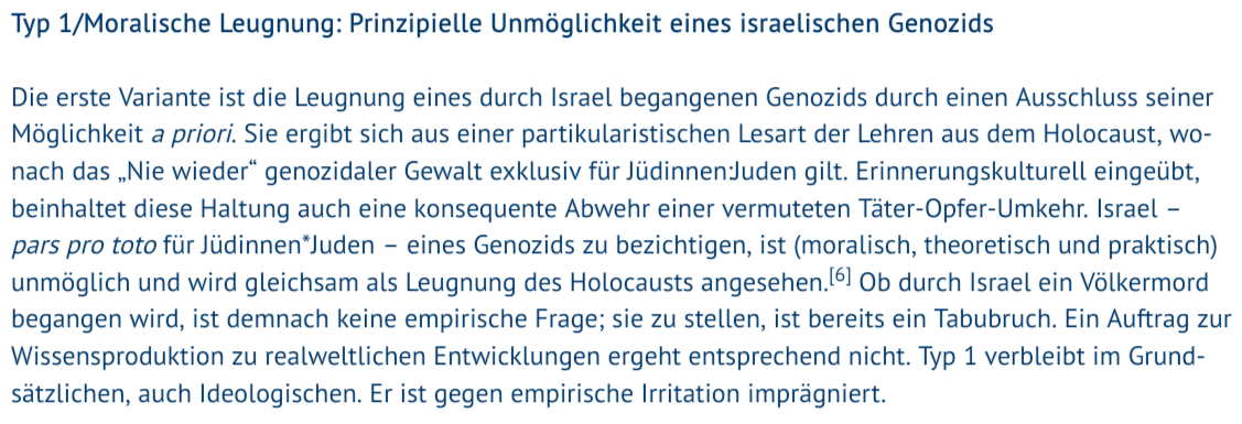 "Im deutschen Kriegsdiskurs wird in unterschiedlichen Varianten abgestritten, dass #Israel einen #Genozid [...]begeht. [...] Eine neue Schicht der Leugnung beginnt jeweils dort, wo gegenüber der vorherigen ein Zugeständnis im Hinblick auf die Realität des Gewaltgeschehens gemacht wird. Dies erklärt auch, wie es möglich ist, dass Abstreiten & Rechtfertigen, Ignorieren & Legitimieren israel. Gewaltanwendung im dt. Diskurs synchron vorzufinden sind."