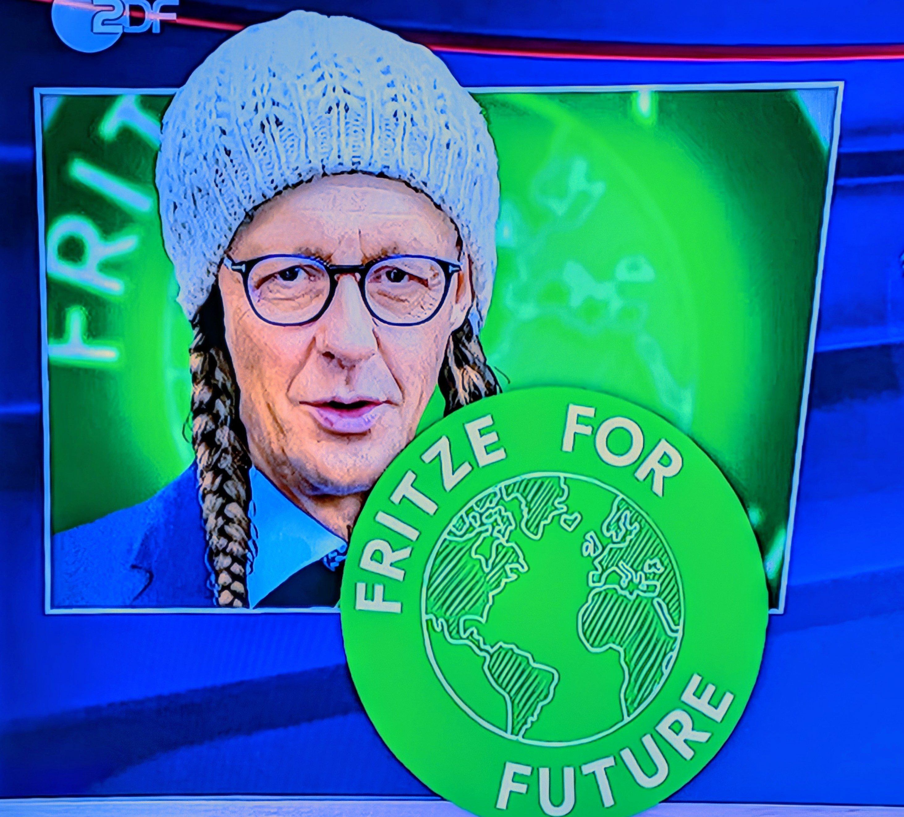 Auf dem Bild sieht man Markus Söder, Bärbel Bas, Friedrich Merz und Lars Klingbeil. Sie stehen jeweils hinter Podien mit Mikrofonen. Merz schaut zu Markus Söder, er sieht schlecht gelaunt aus. Darüber steht auf einem hellgrünen Banner: „Koa-Ausschuss: Ein verheerendes Signal an die COP!“