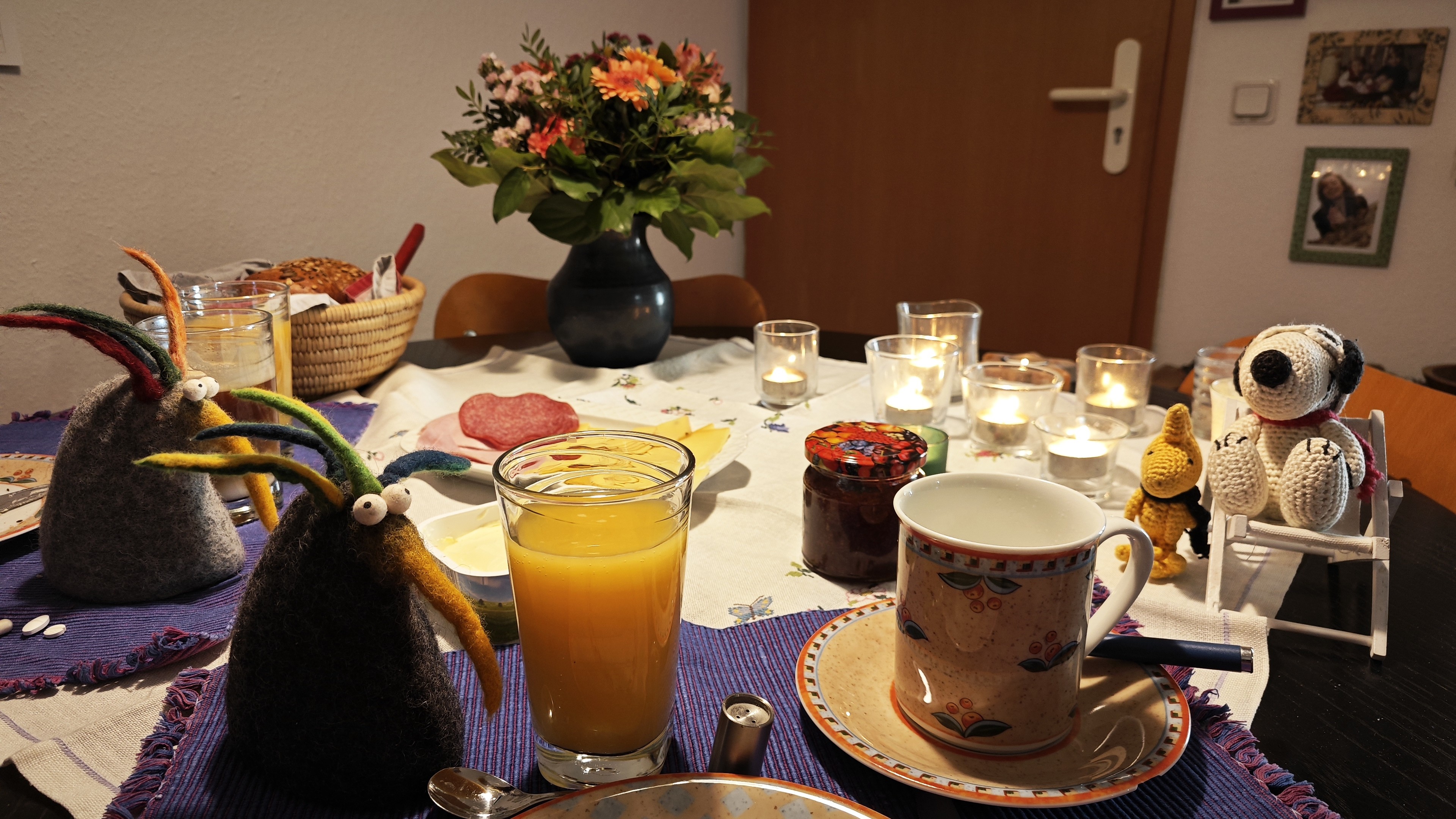 Die Kinder und ich, wir haben schon gefrühstückt und es ist fast ein Jammer, dass ich die beiden jetzt dann aus dem Spielen holen muss, damit wir uns für den Gottesdienst fertig machen können.