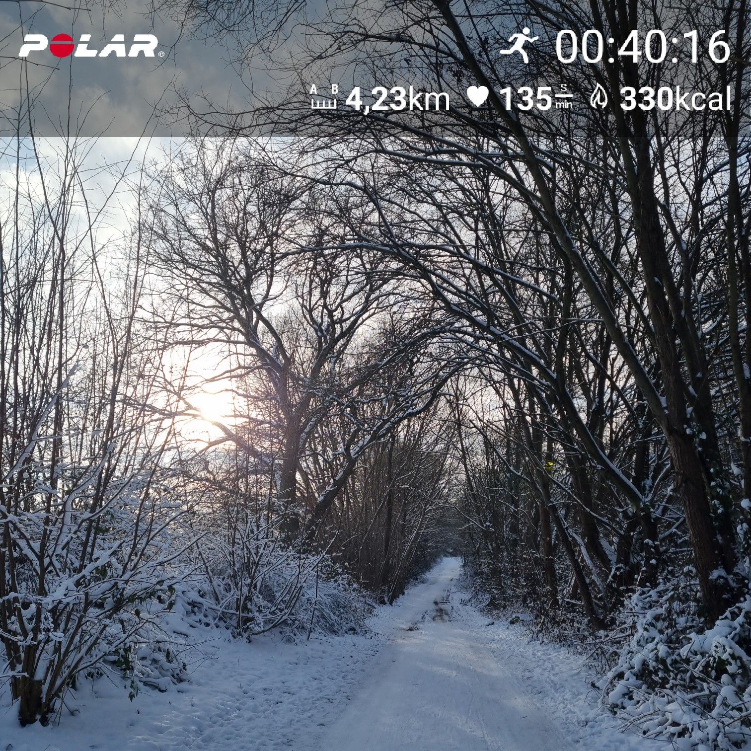 Es liegt immer noch verhältnismäßig viel Schnee. Ich will mich nicht beschweren, denn eine Schneedecke ist mir lieber als der in Norddeutschland übliche Schneematsch, aber angenehm finde ich das Lauftraining unter diesen Umständen trotzdem nicht.