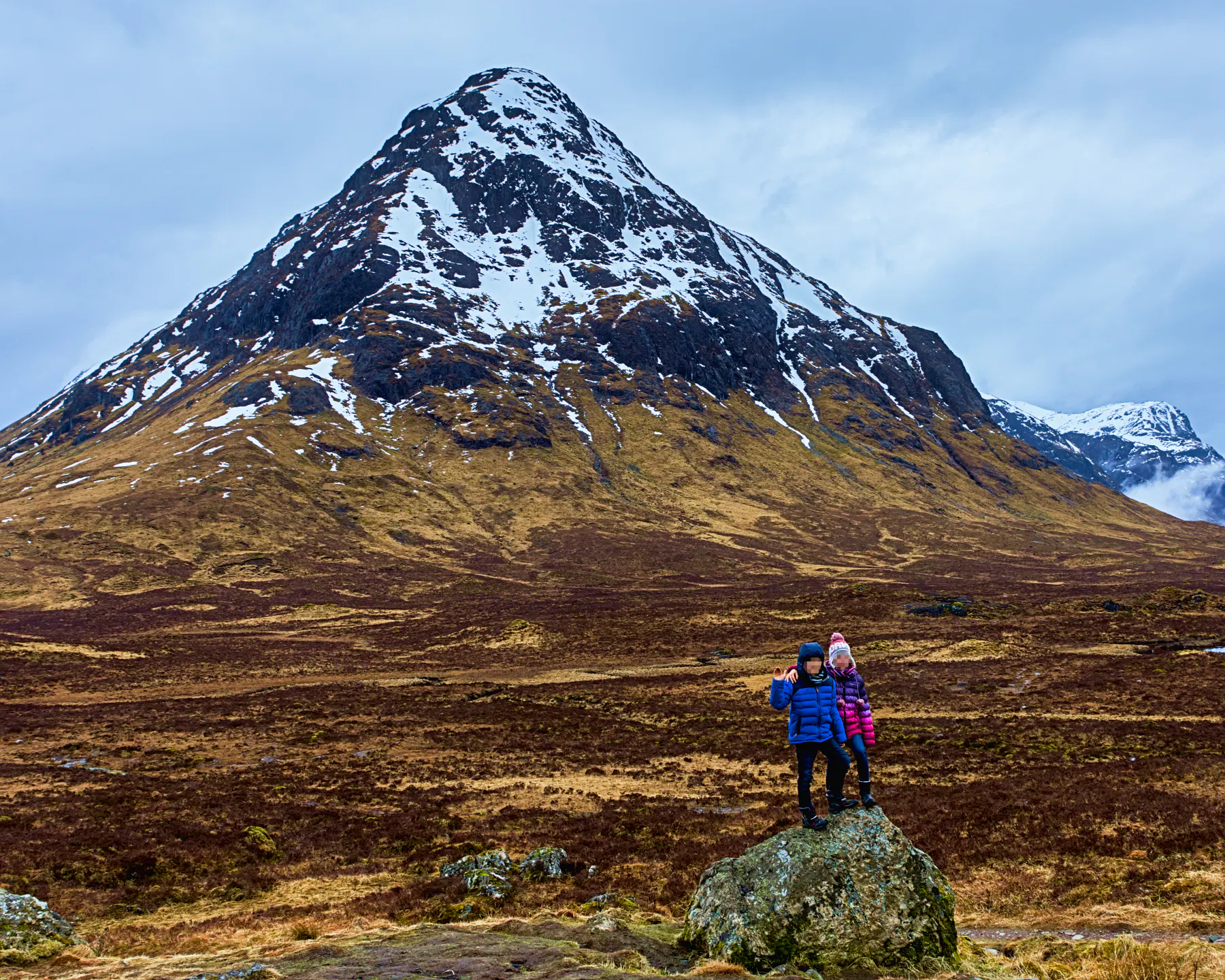 Schottland, Glen Coe, unter dem Bidean nam Bian, Anfang April 2018. Der Winter zog sich bereits zurück, aber das Frühjahr war noch nicht wirklich angekommen.