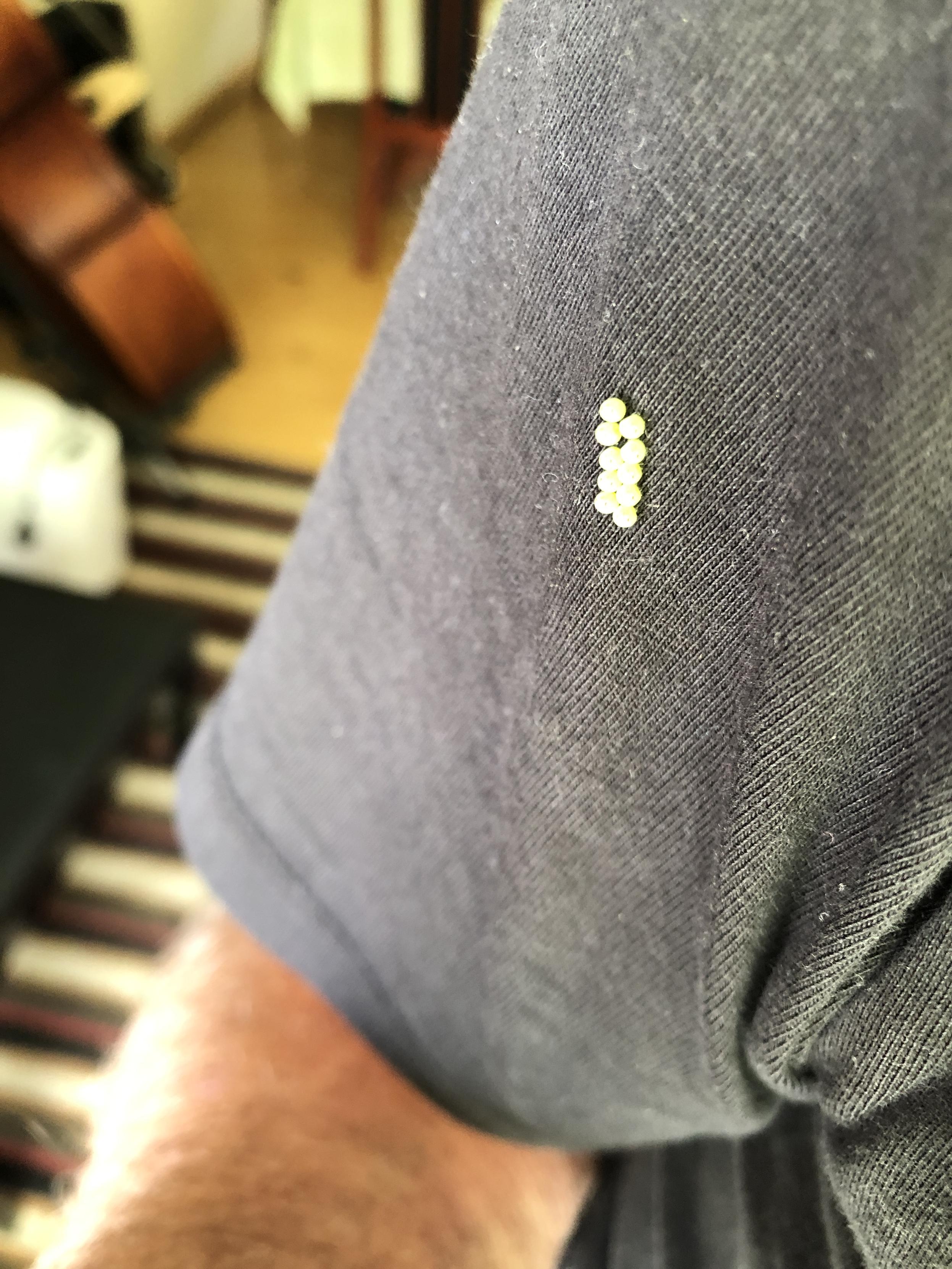 (a friendly butterfly laid these on my tshirt while I was tying up the tomatoes this morning haha)