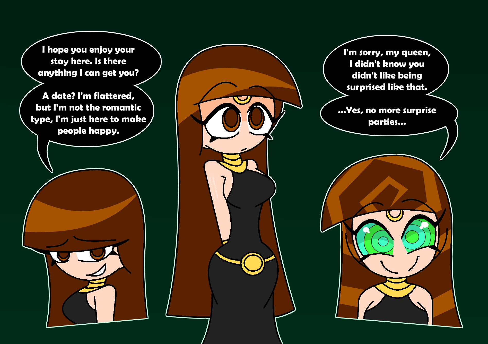 Revived that old "Mesmeric Charlotte Emily is made into a humanoid servant" idea, this time under Neo Queen Serenity. The first take was with Anakaris as you can see.