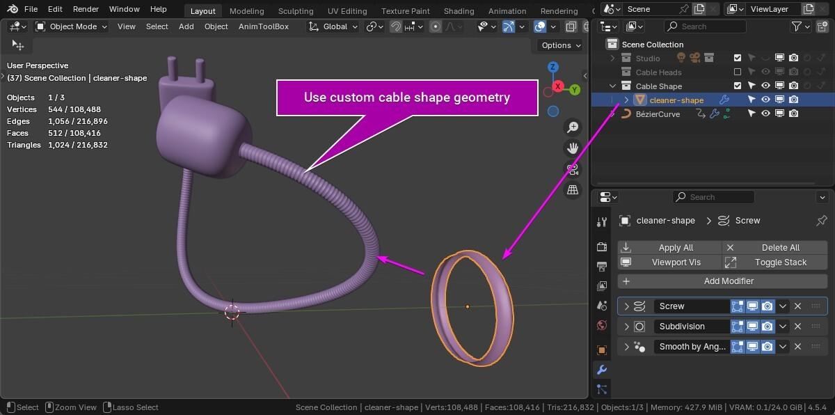 My little #geometrynodes modifier, I recently published, got a small but nice update. Now, you can create individual cable structures by using your own geometry patterns. Check it out if you create cables or similar objects and like small time savers, that makes the 3d life a bit easier. #b3d