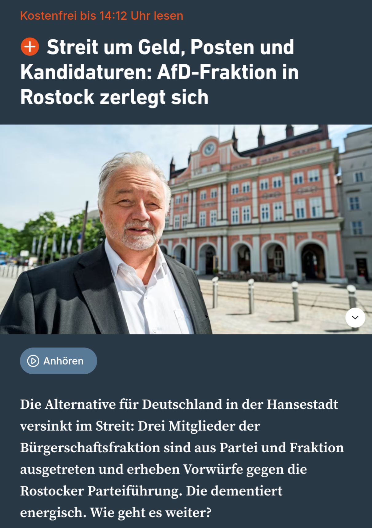 Die Welle der sich selbst zerlegenden AfD-Fraktionen und -Verbänden geht weiter. Heute bei uns. Heute ist ein guter Tag. Weiter so! 🍾🥂