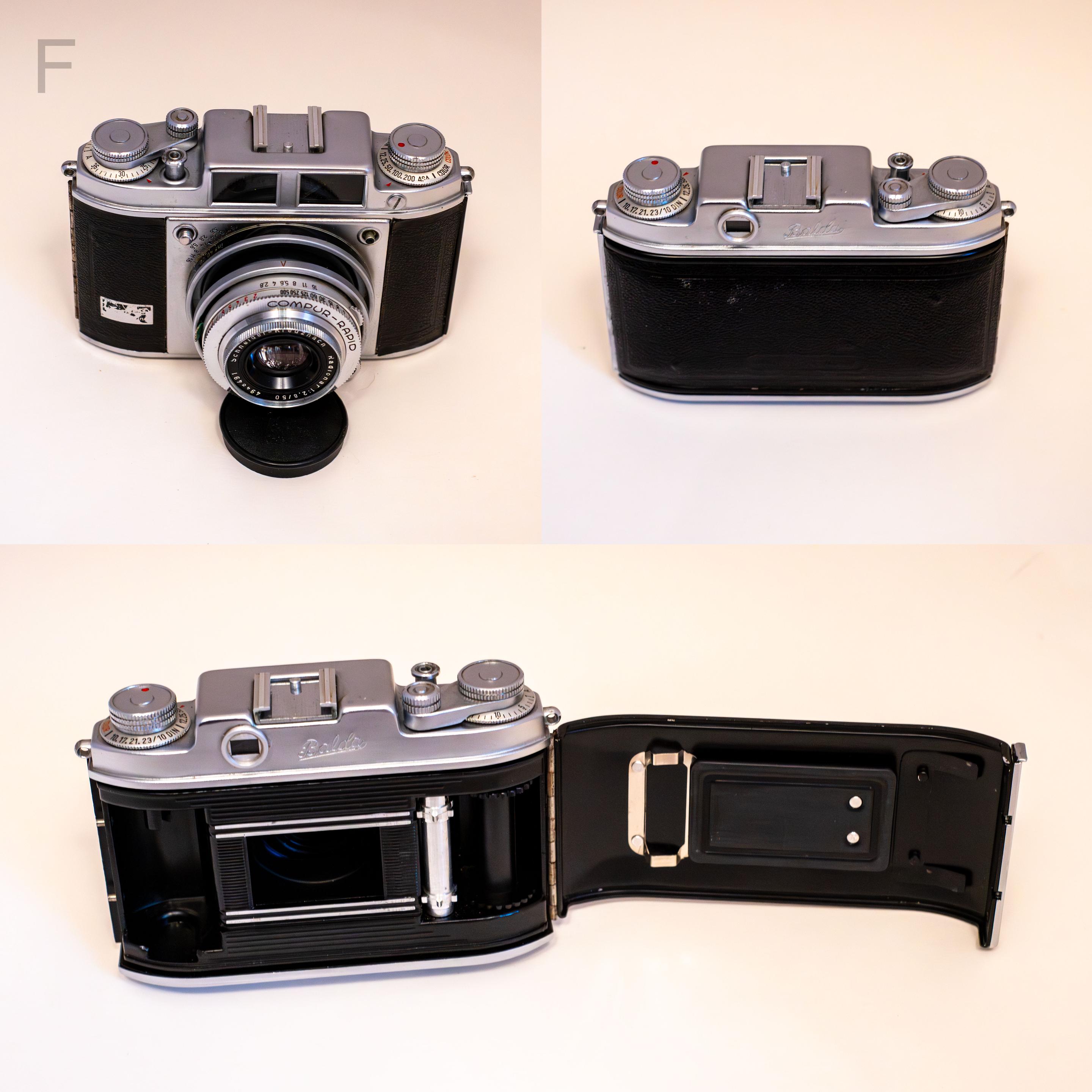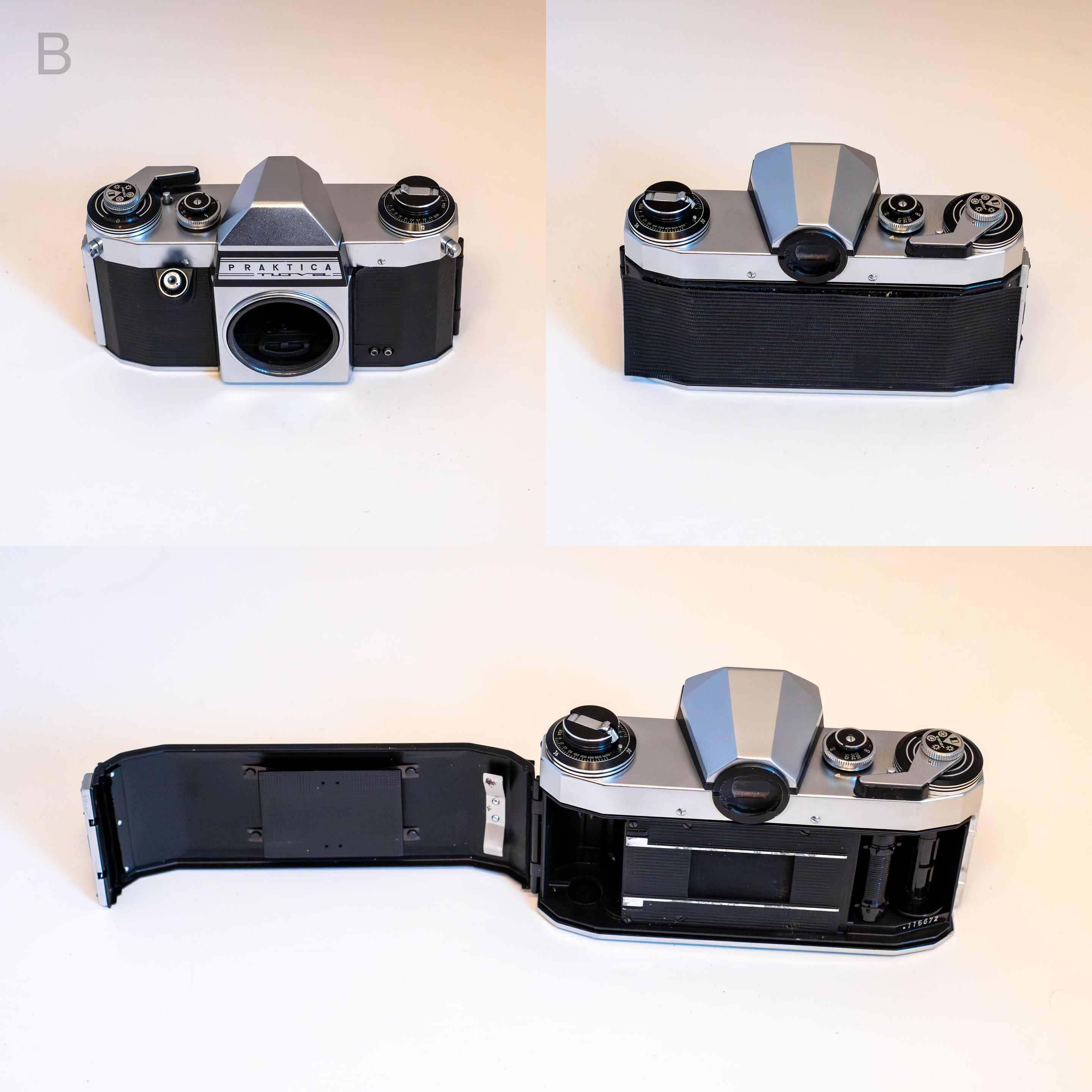 One is a Praktica Nova with peeling leatherette and no lens, but seems to be in working order. The other is a Balda Superbaldina, again, seems to be in working order.