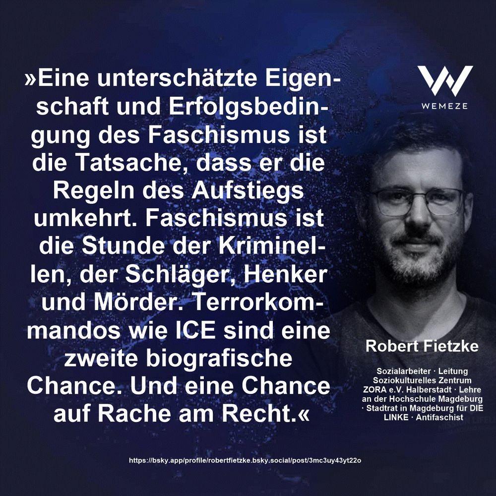 »Eine unterschätzte Eigenschaft und Erfolgsbedingung des #Faschismus ist die Tatsache, dass er die Regeln des Aufstiegs umkehrt. Faschismus ist die Stunde der #Kriminellen, der #Schläger, #Henker und #Mörder. Terrorkommandos wie ICE sind eine zweite biografische Chance. Und eine Chance auf Rache am Recht.«