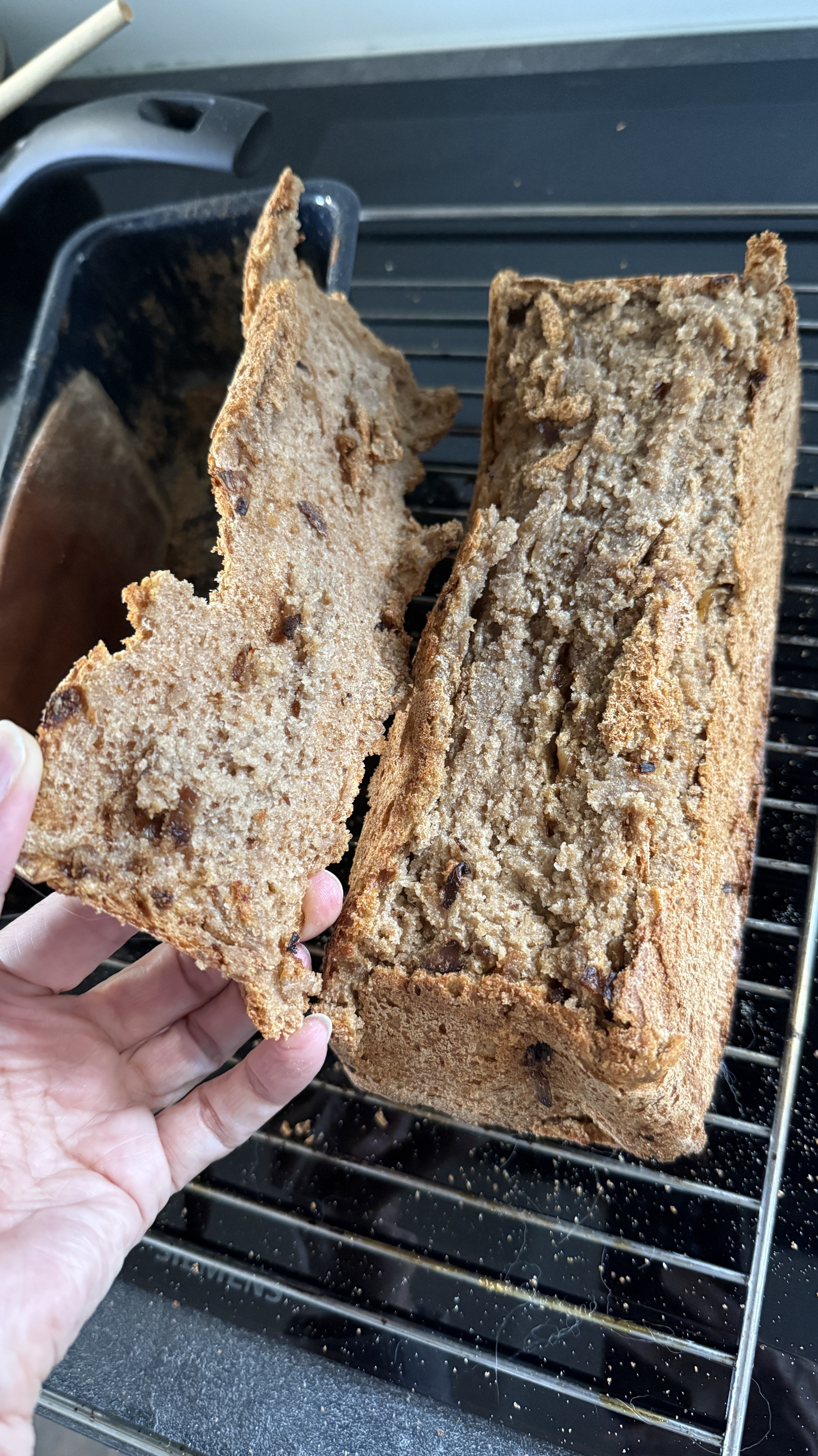 Ich hab vergessen, die Form fürs Brot zu fetten. Sieht jetzt halt so aus 🤷🏻♀️