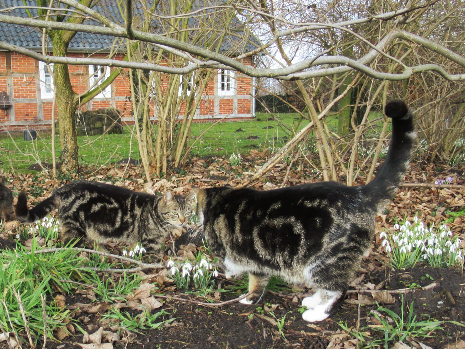 Here are a few more winter cats I photographed this Sunday. They're supposed to be having breakfast when it's still fairly dark, and the photos suffer because of it.