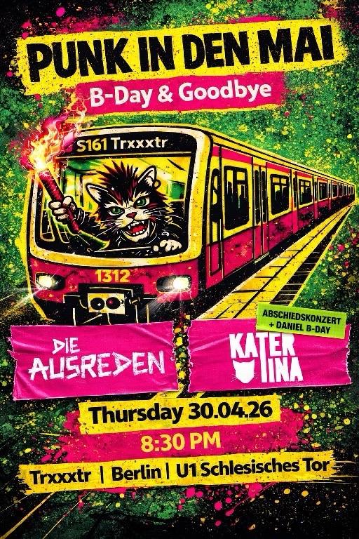 Kater Tina spielen ihr Abschiedskonzert und Die Ausreden feiern mit!