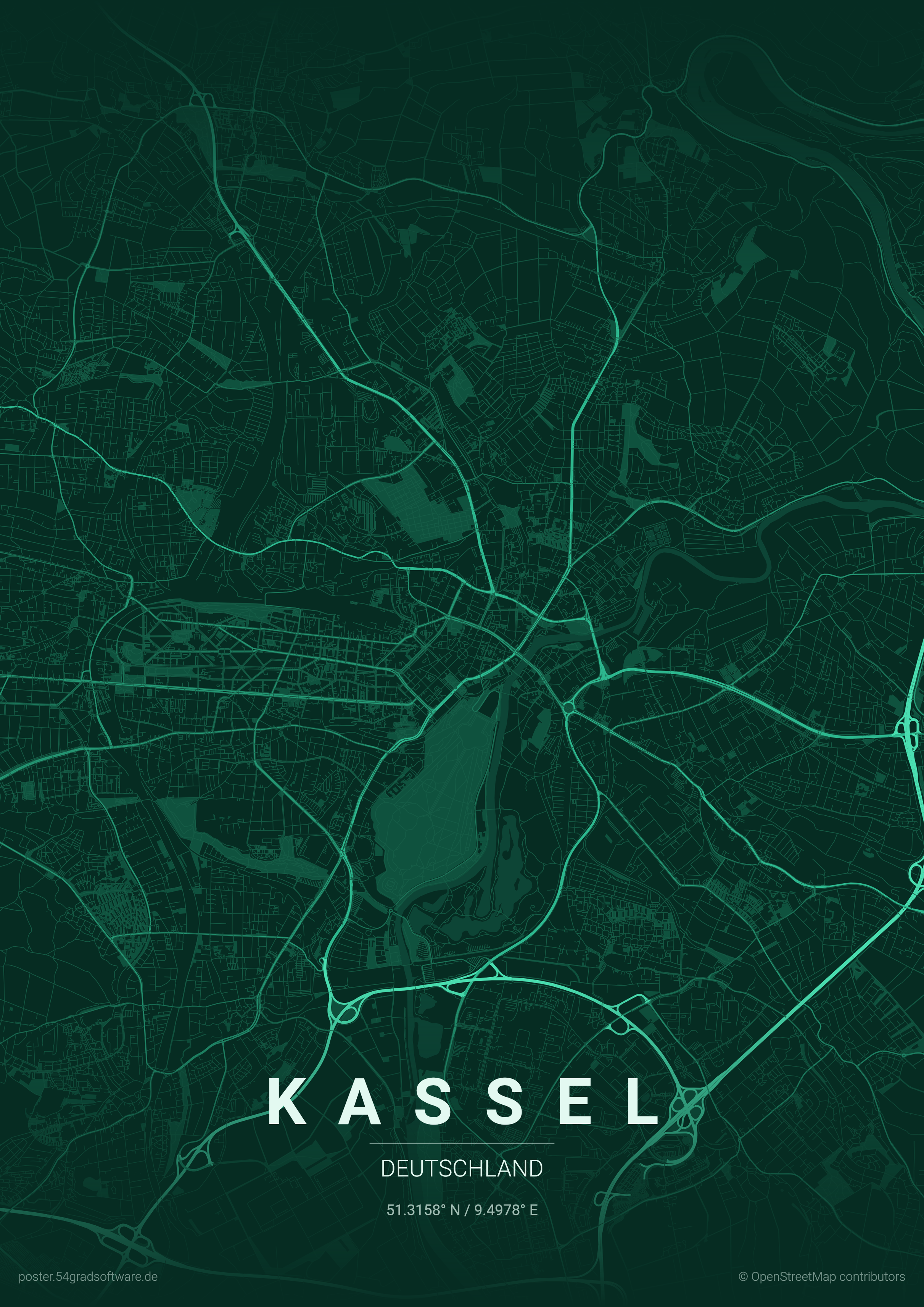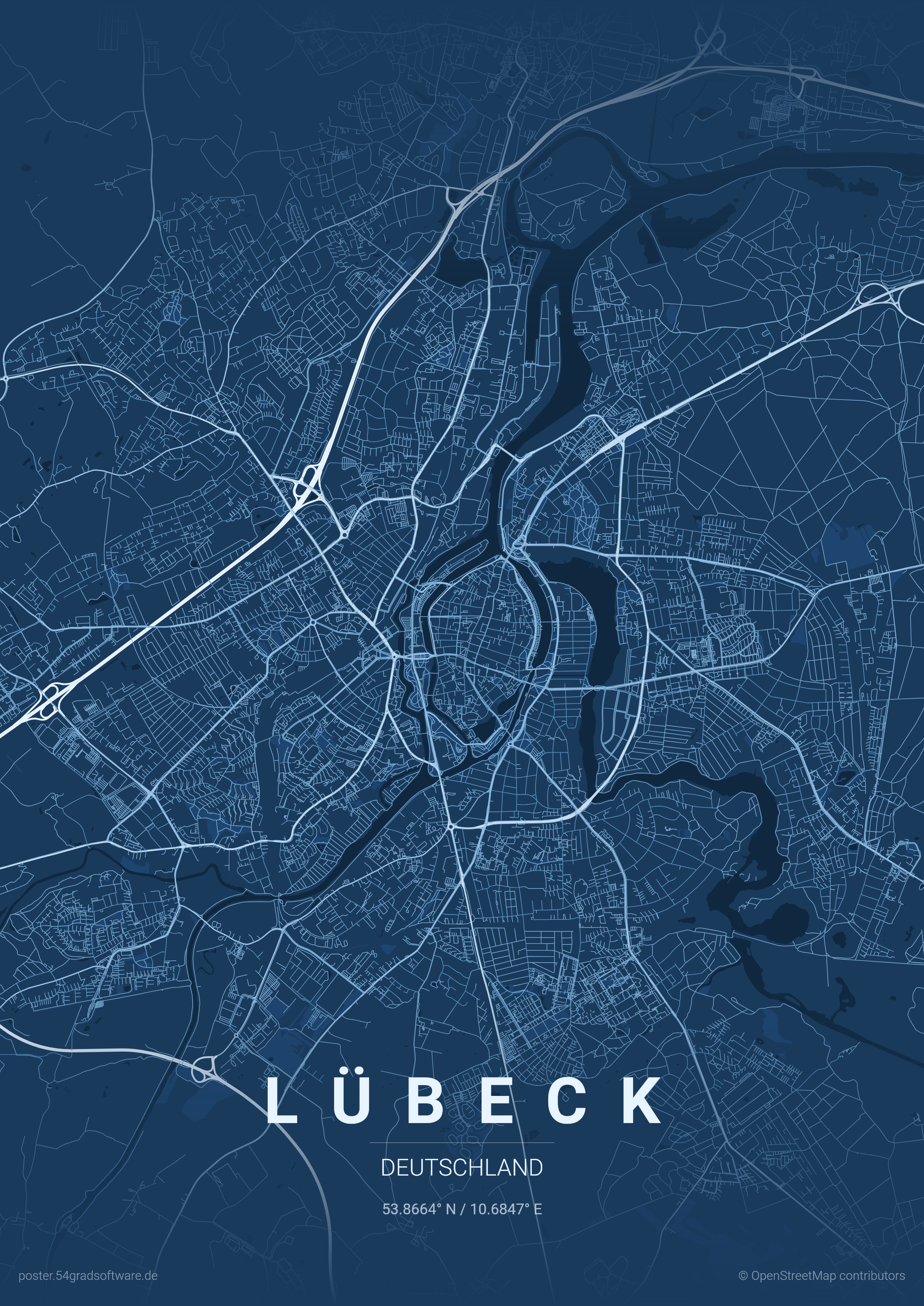 Mit OpenStreepMap-Daten erstelle Poster von: #Lubeck #Oberhausen #Rostock und #Kassel