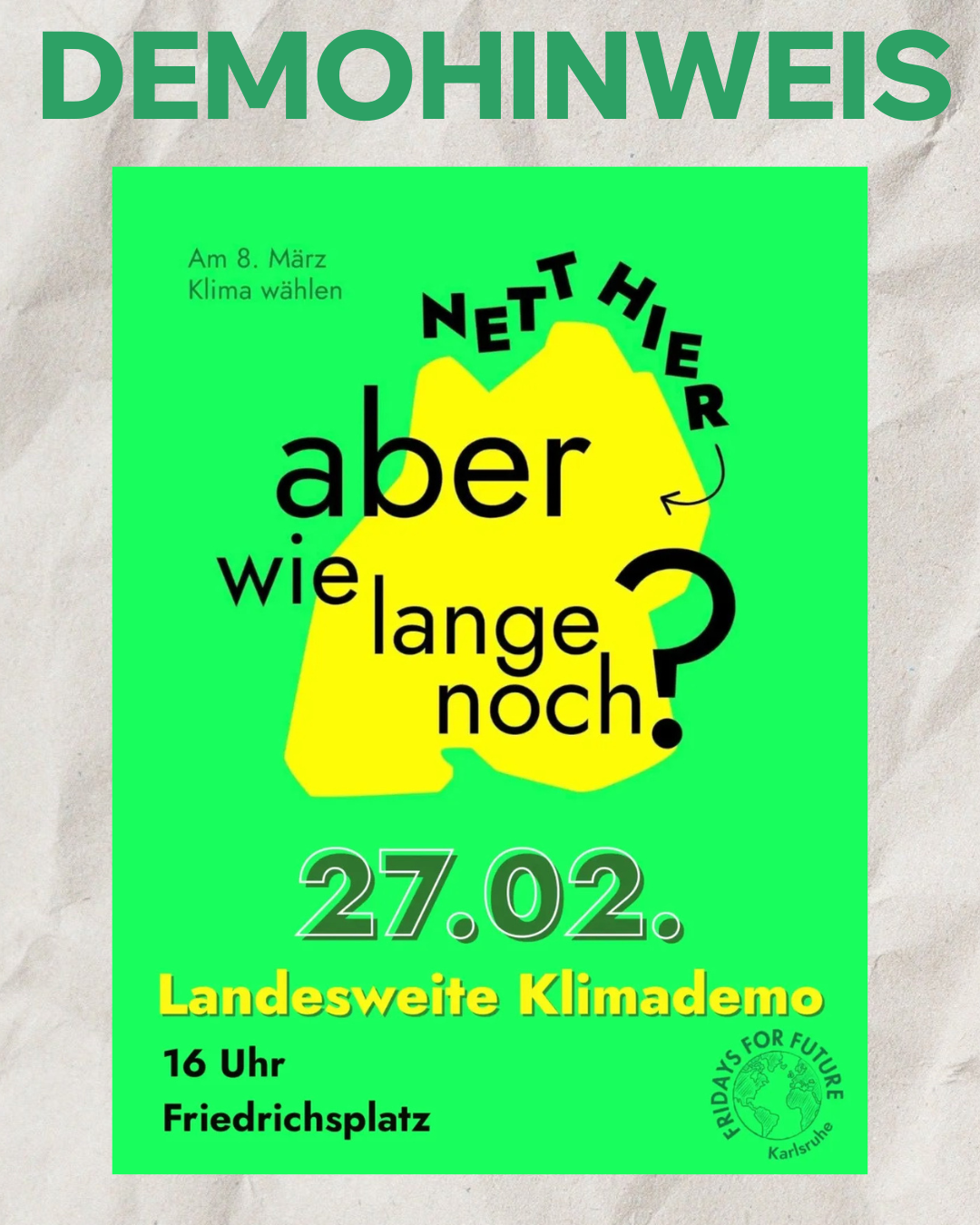 Am 27. Februar gehen wir deshalb zum Klimastreik von Fridays for Future auf die Straße: für konsequenten Klimaschutz, soziale Gerechtigkeit und eine Politik, die Verantwortung übernimmt.