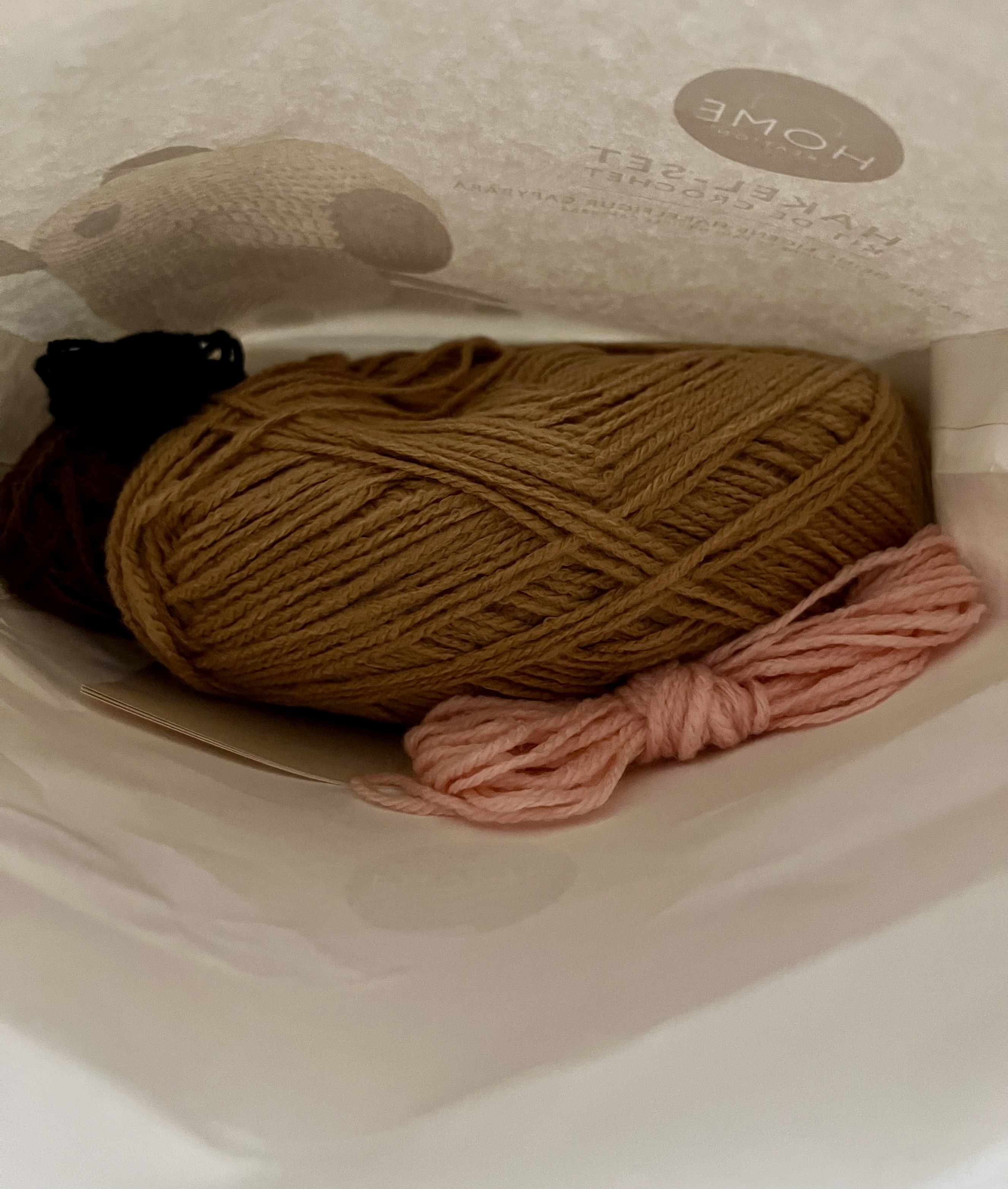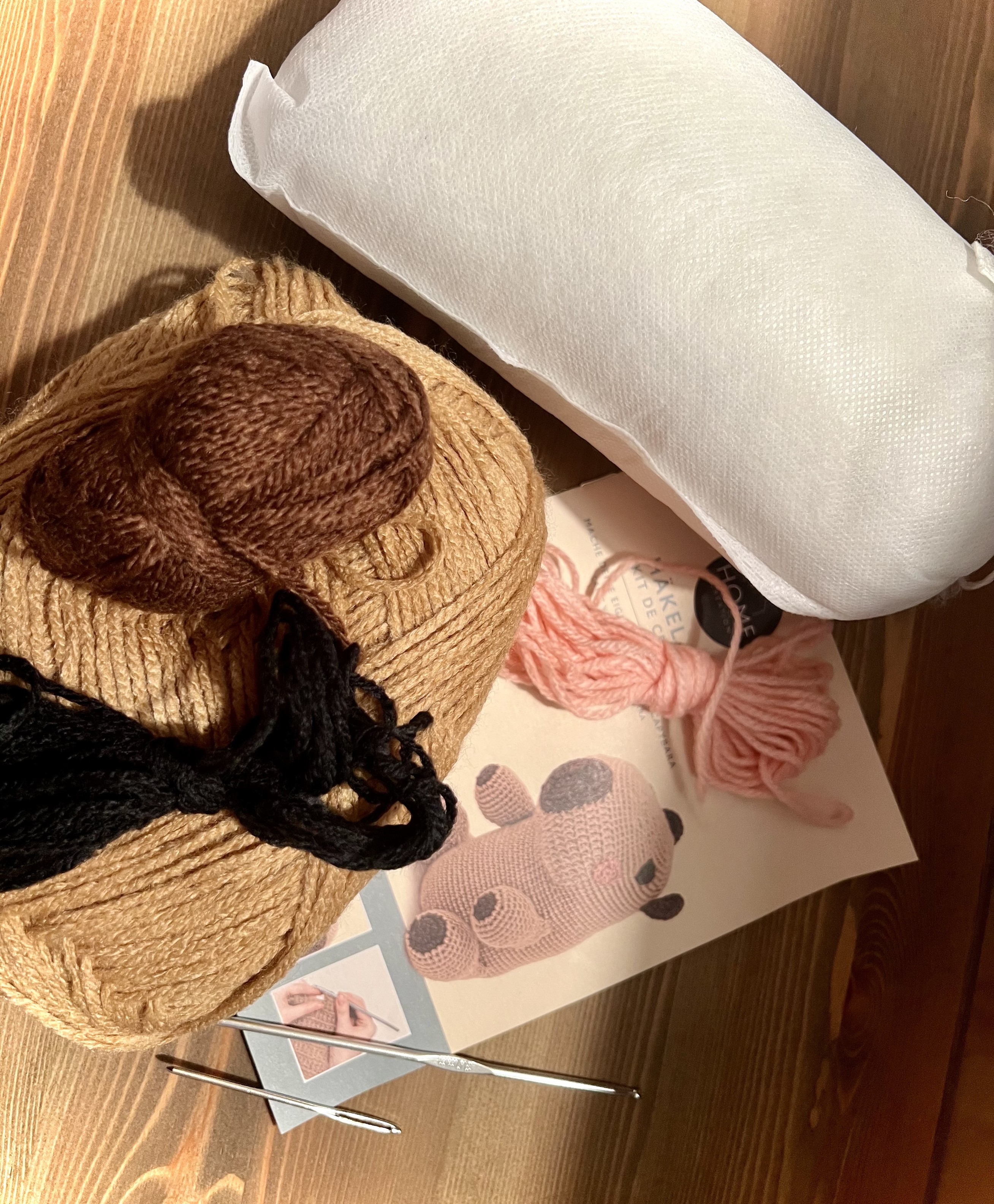 Ich hab schon mal ausgepackt. Alles da fürs Capybara: Wolle für Körper, Pfötchen, Ohren, Wange, Füllmaterial, OP-Besteck. Und die Wolle ist sehr weich 🥰 Jetzt muss ich nur noch anfangen… 🙈