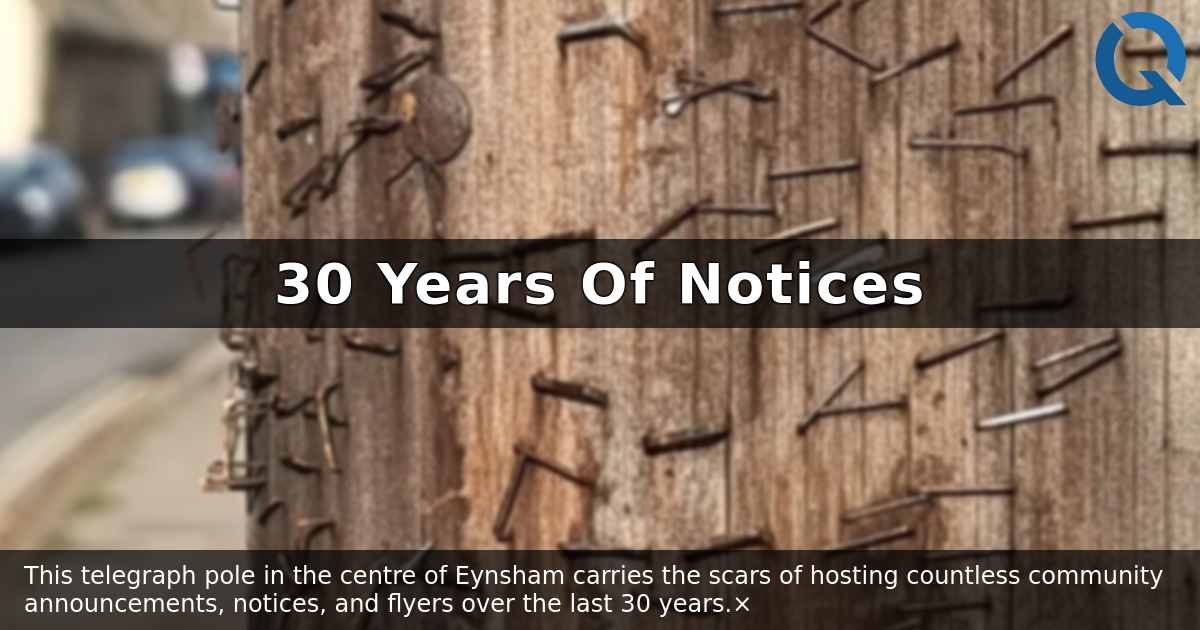 This telegraph pole in the centre of Eynsham carries the scars of hosting countless community announcements, notices, and flyers over the last 30 years.