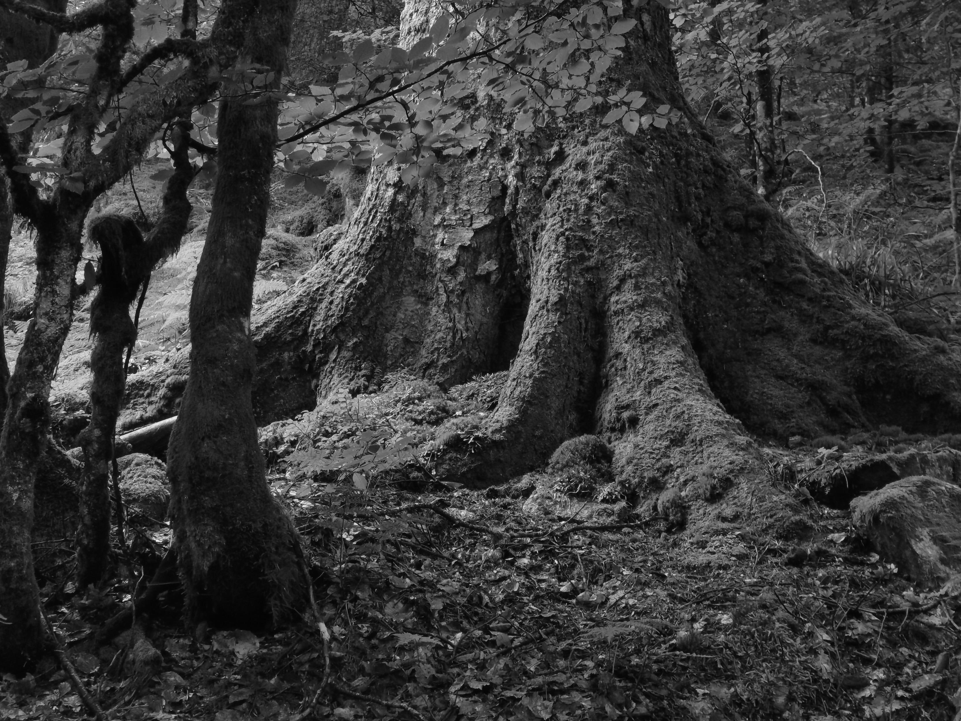 Der Vordergrund: Im Vordergrund sind dunkle, abgestorbene Pflanzen oder Sträucher zu sehen, deren Silhouetten scharf gegen den helleren Nebel und das diffuse Licht abgesetzt sind. Darunter scheint der Boden oder das Gras leicht bereift oder feucht zu sein und schimmert in dunklen Grün- und Brauntönen. Weiter hinten im Vordergrund erstreckt sich eine Fläche mit niedrigeren, verwelkten Pflanzen, die durch den Nebel hindurch noch erkennbar sind.