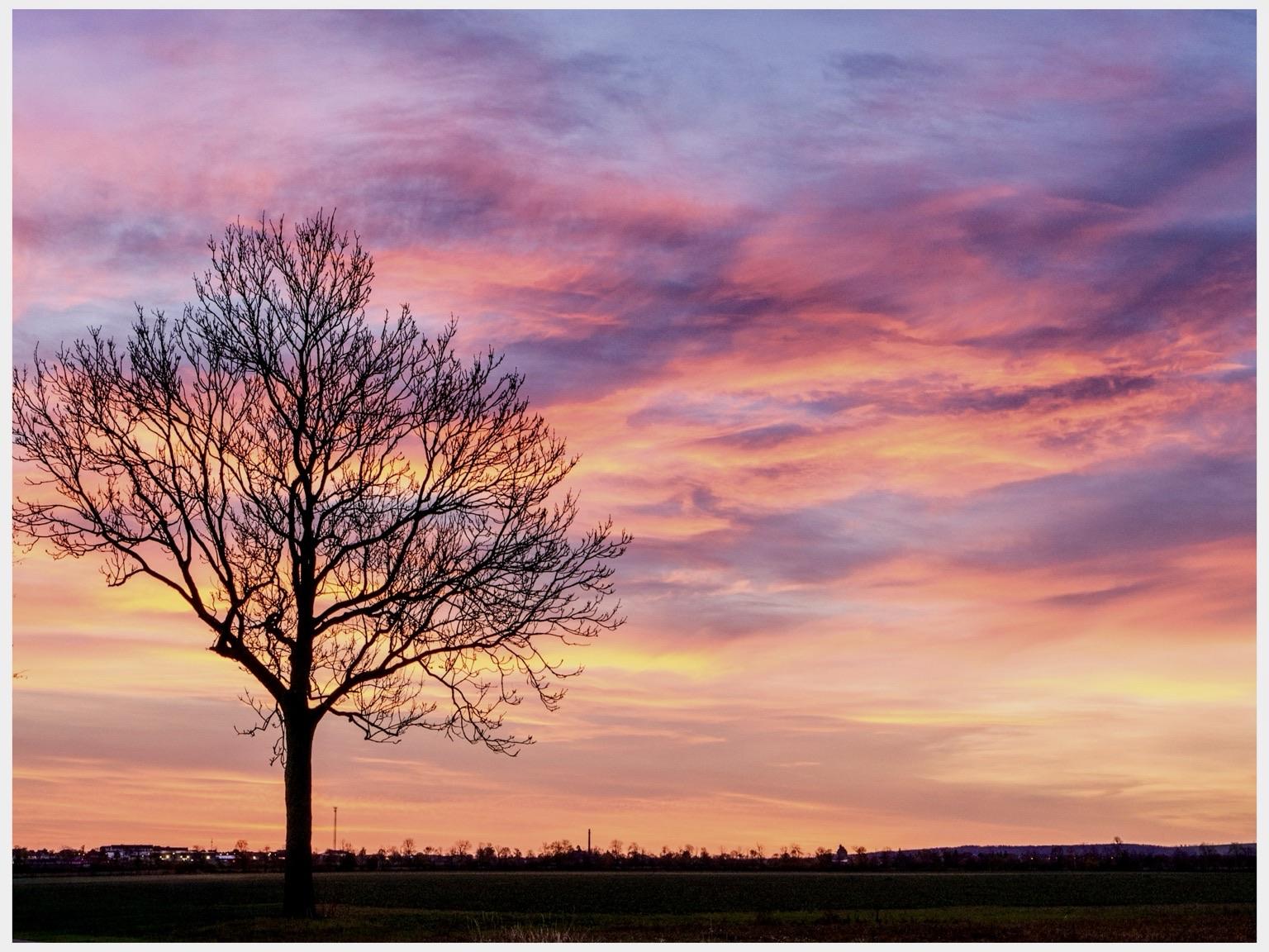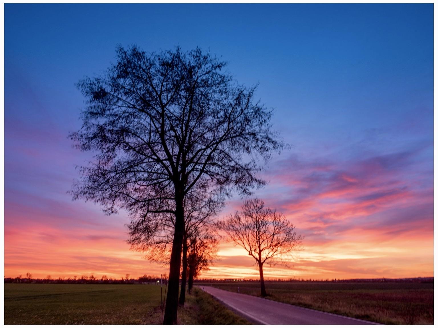 Zum Feierabend noch zwei Schnappschüsse vom heutigen Morgenrot. Fetzte, dass diese Landstraße gerade ein dead end ist, so konnte ich in Ruhe knipsen. Wobei mich das Vorbeifahren von Autos an sich nicht stört, aber die glotzen immer so wenn ich mit der Kamera am Feld stehe. 🤪