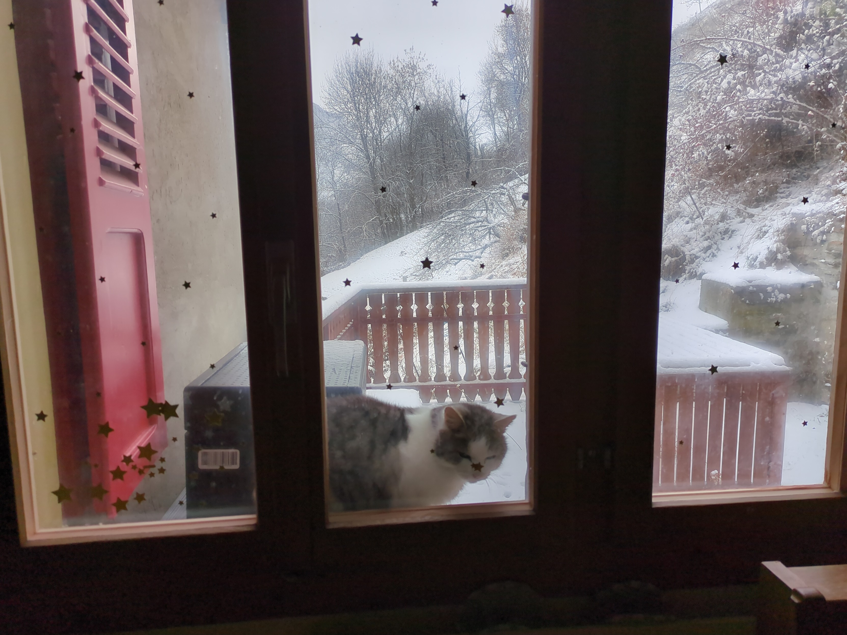 Als es heute Nachmittag mal so richtig heftig schneite hab ich Neera erwischt als sie ganz fasziniert zuguckte.