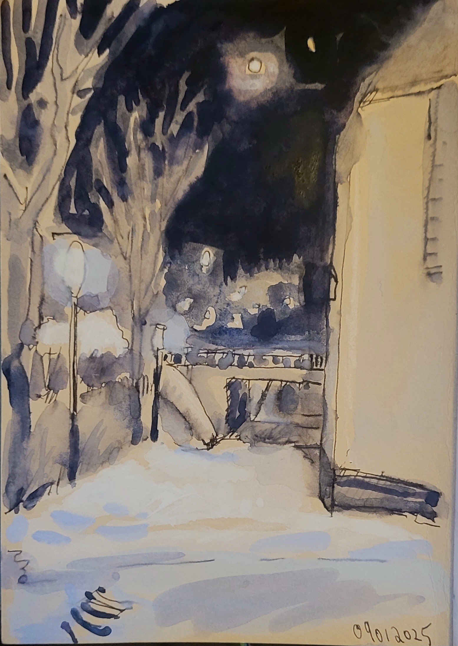 #UrbanSketching in #watercolour mit reduzierter Palette wegen Wetter und dunkel