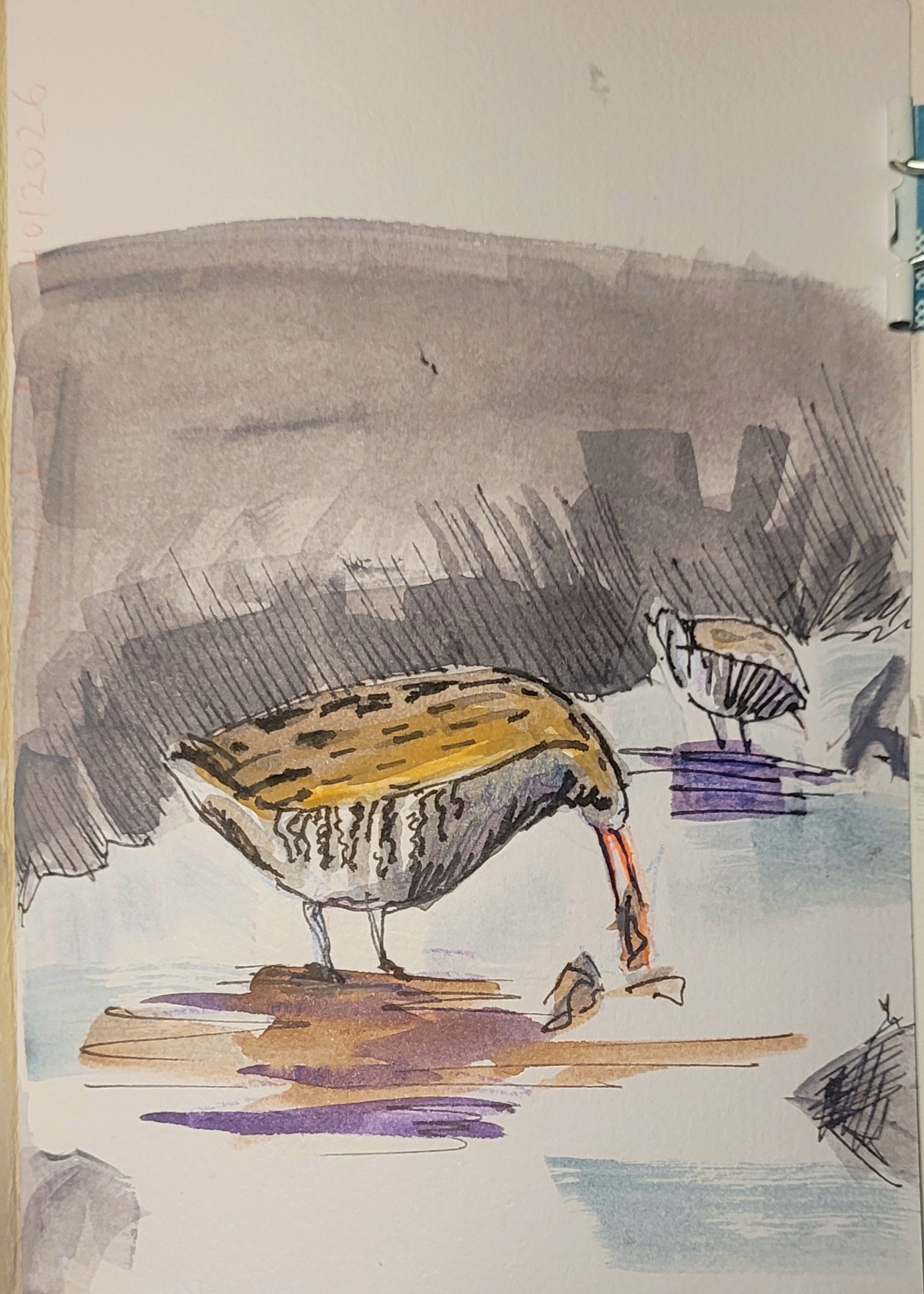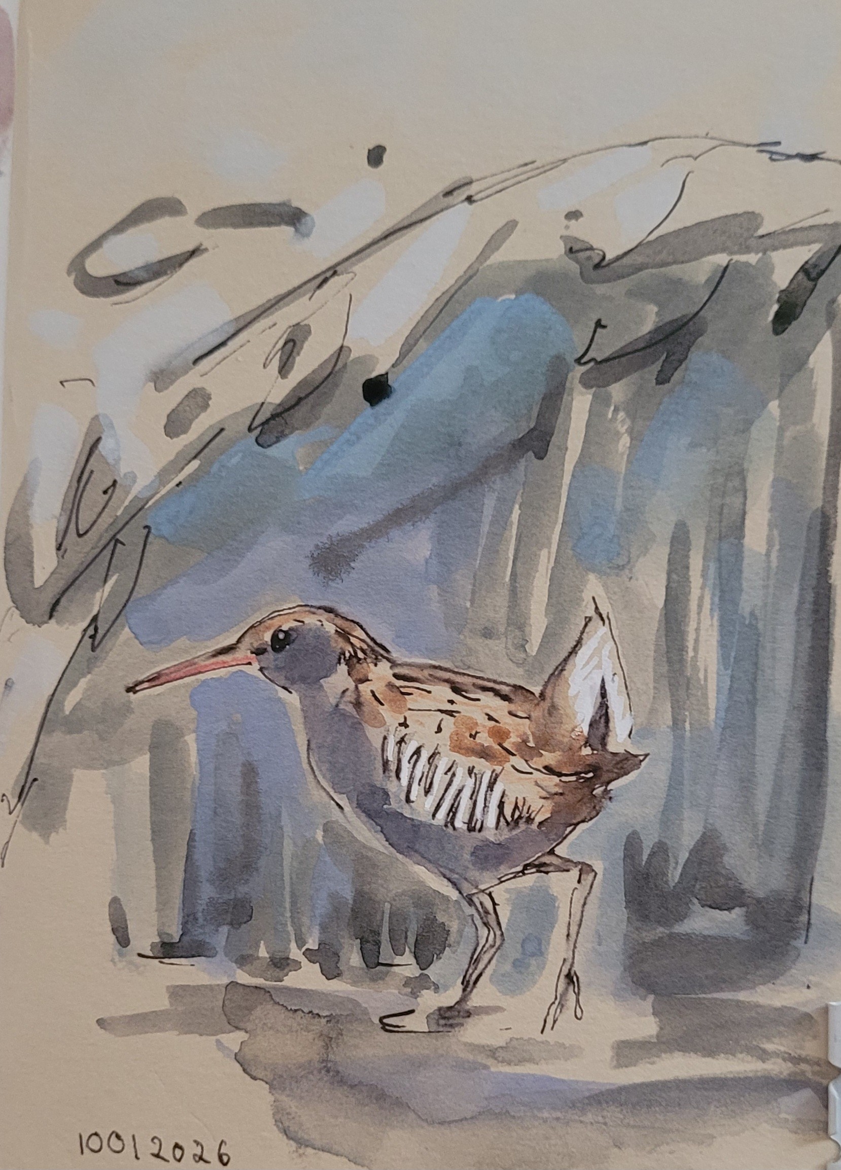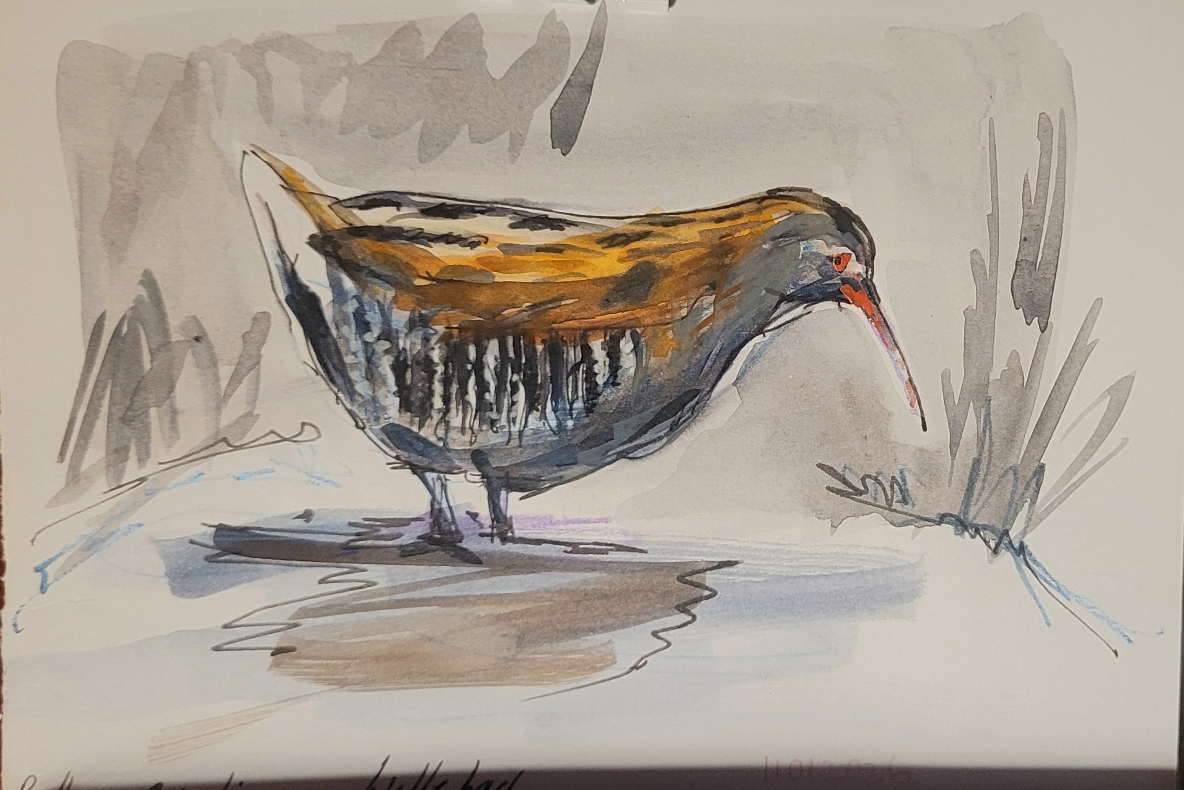 Heute war sie immer noch da: die Wasserralle im Park #fieldnotes #birds in #watercolour