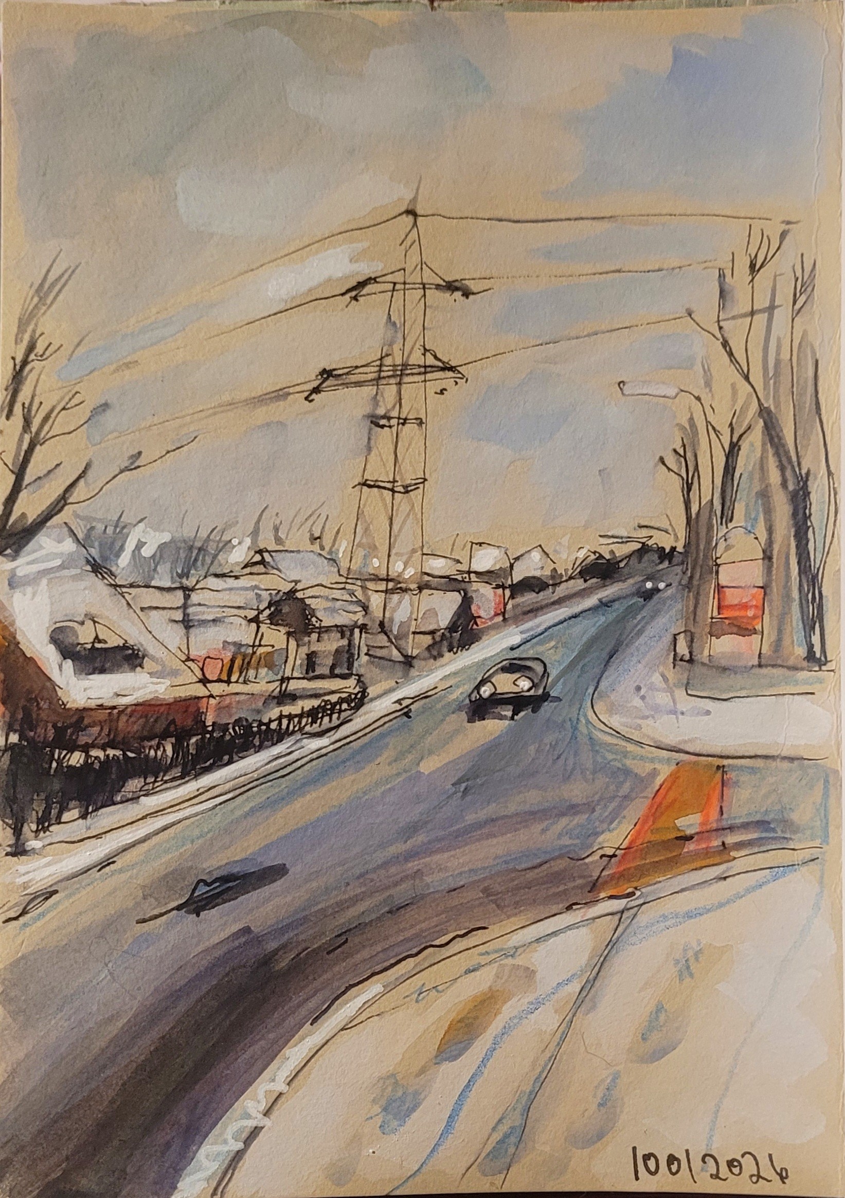 Schnee in der Kleinstadt #urbansketching in #watercolour