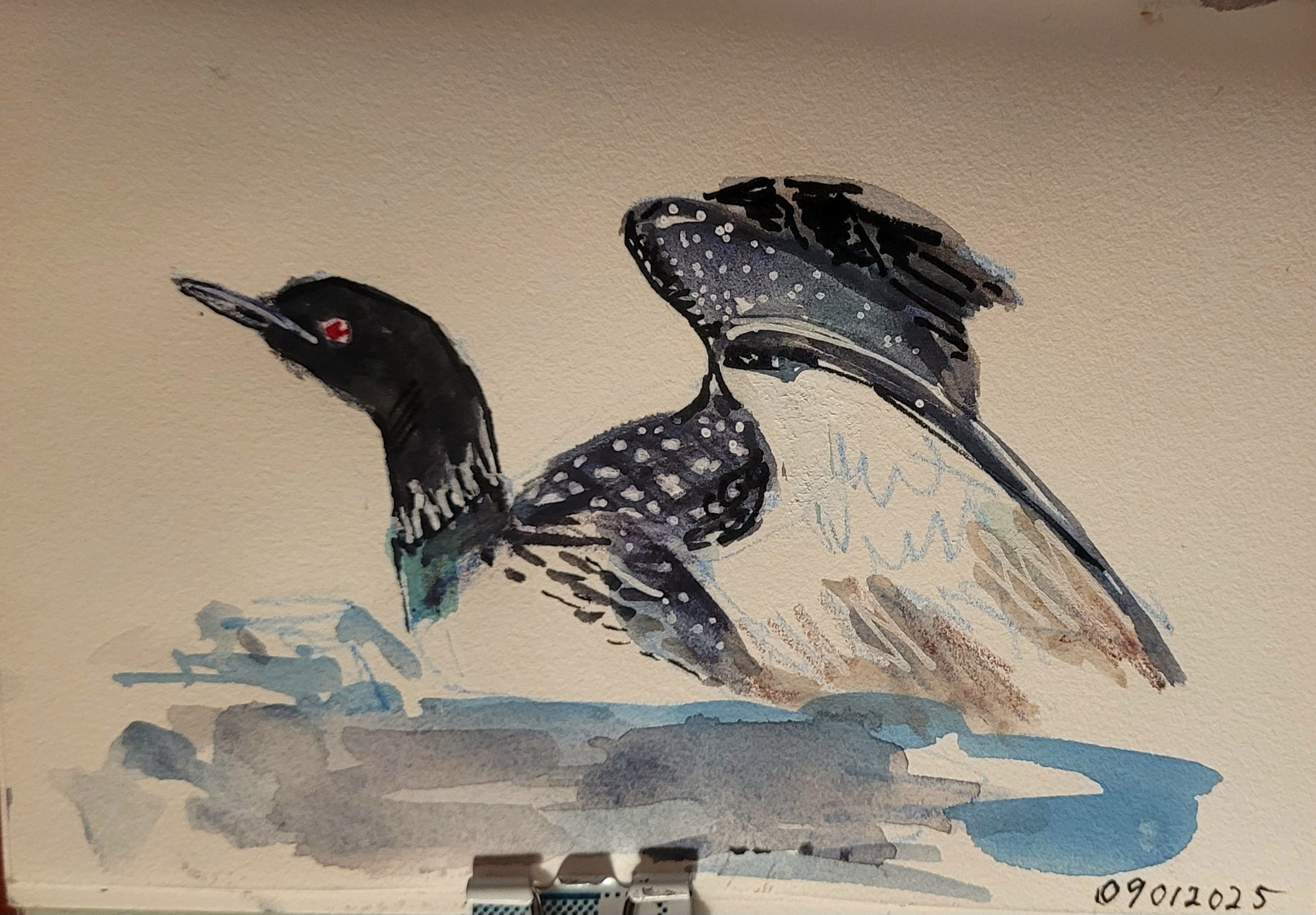 Eistaucher in Din A3, das ist also 8 x mein übliches Format von Din A6 im Skizzenbuch (2. Bild)