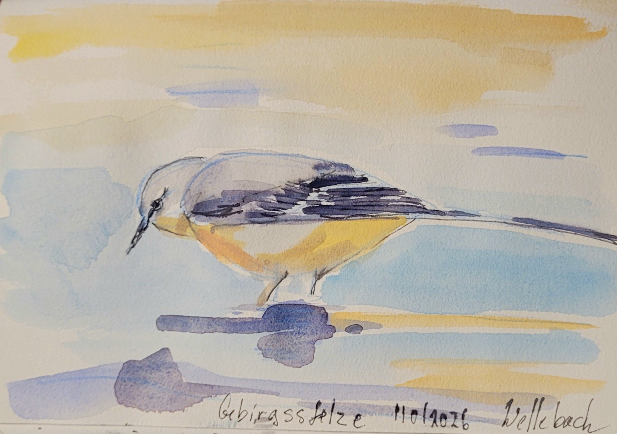 Und die Gebirgsstelze überwintert auch wieder am kleinen Bach #fieldnotes #birds in #watercolour