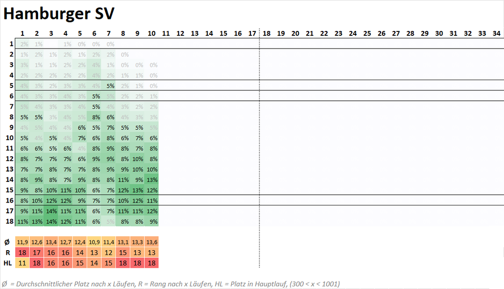 Prognose für die Saison-Endplatzierung auf Basis der Daten bis zum 10. Spieltag, heute: Hamburger SV
