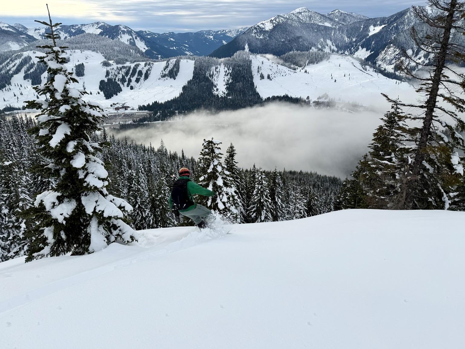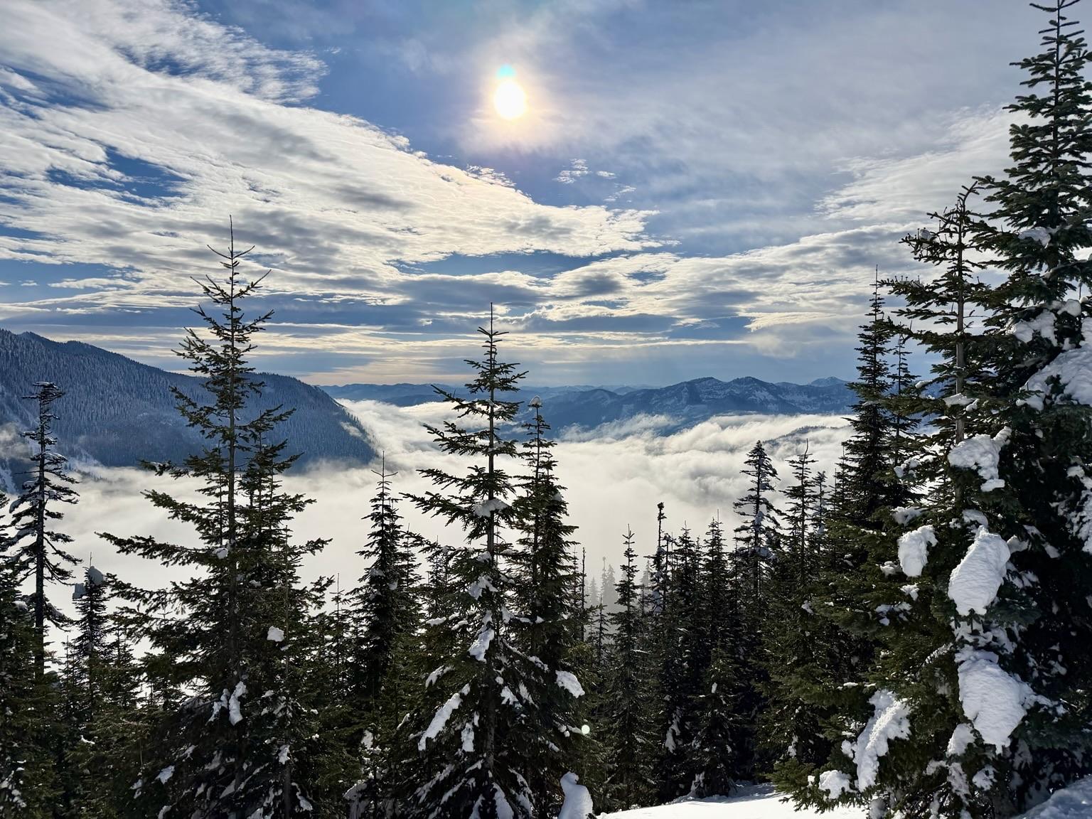 Got out into the alpine today, explored a new zone on Snoqualmie Pass I had never been. The mountain access starts at a low elevation, we approached from 2500ft/762m topping out around 4500ft/1372m. My partner was feeling confident riding down a line we frankly didn't belong, I was feeling a little weak in the confidence & left knee. We descended the fall line in the 3rd picture shown here. Warm temps opened the snowpack, making it soft, mushy, hard to ride and easy to sink in deep. We eventually acknowledged we were in over our heads, pulled the plug to climb out through steep trees. Attempting to get in position to transfer from ride mode to climb mode on the splitboard... my step caved in, I sunk up to my chest in a sinkhole between a downed tree. Stress kicked in, not just from the present moment but these present times, wtf is going on world! Negative thoughts looped my mind. Thoughts of an injury causing a rescue did not settle well, nobody would come get us where we were. I felt my mortality more ever clear. My rule in the mountains is to keep it cool, you need a clear head to get you through. Mountains are my place to learn, reflect on life and feel alive.