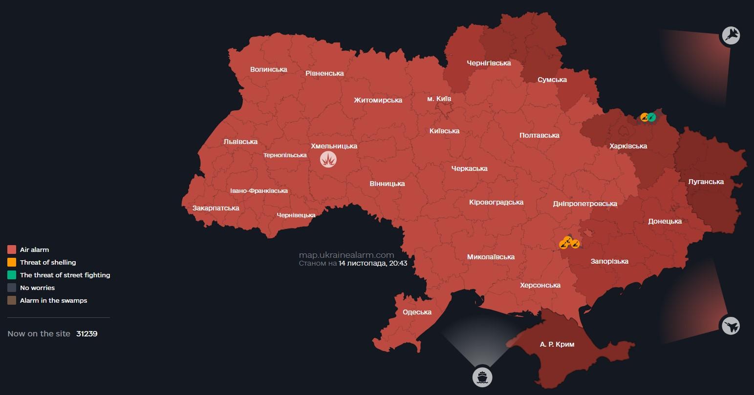 A missile alert has been declared across Ukraine following the takeoff of Russian MiG-31K aircraft.