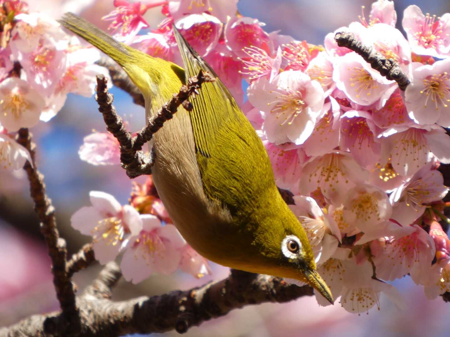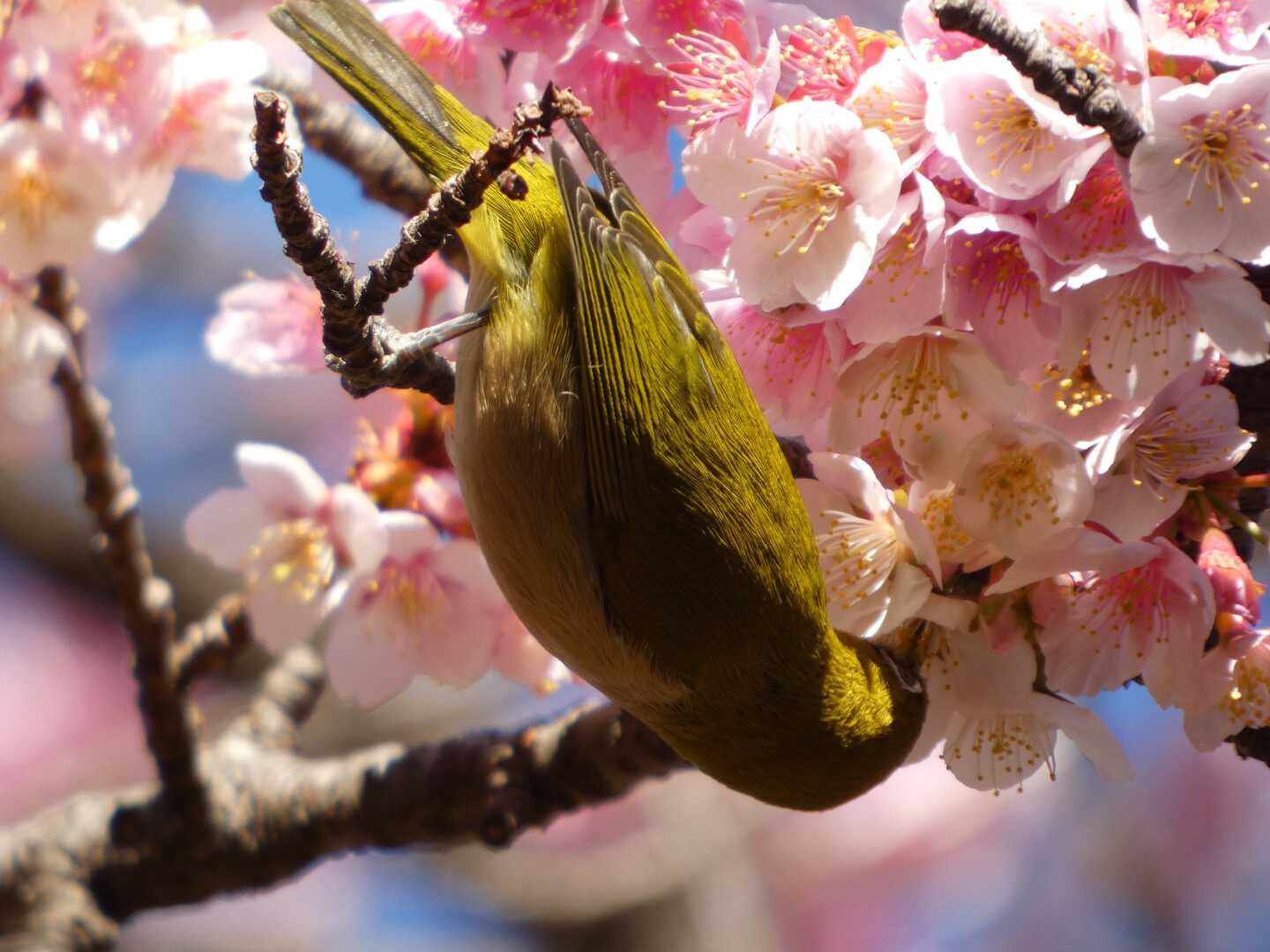 Its beak is also covered with pollens🥰(2 photos) #bird #nature #bloomscrolling