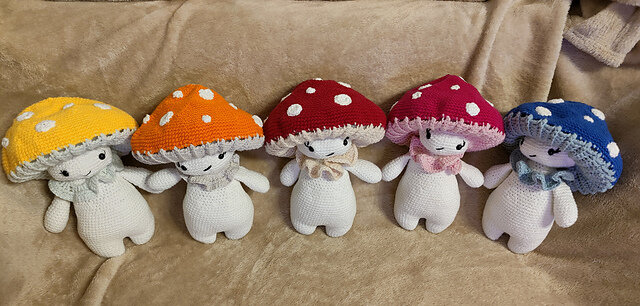 Say Hi to my little Rainbow Shroomie Army so far! I can't stop squeeing, they look so cute together!