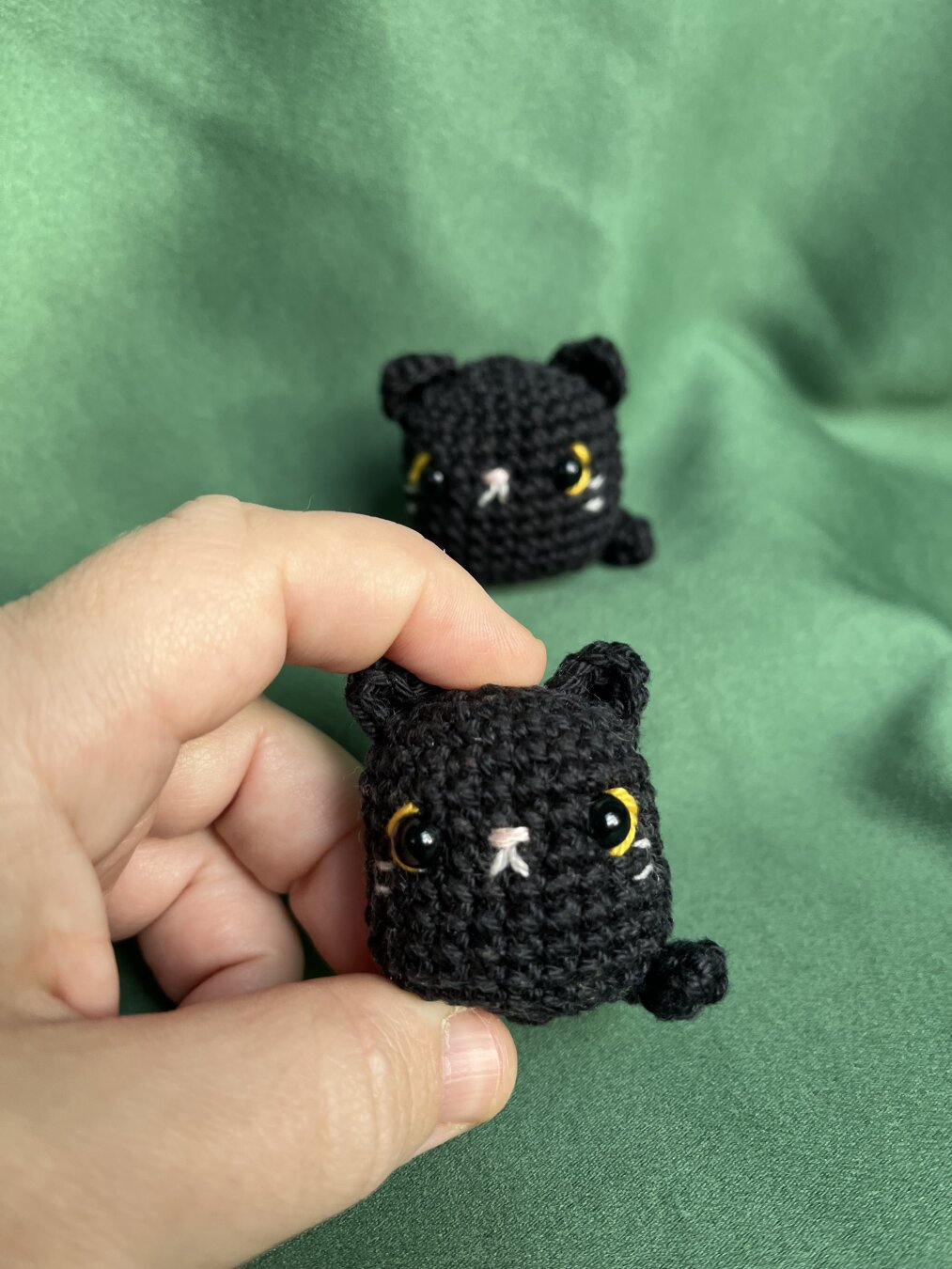 Das Bild zeigt ein detailreiches, handgefertigtes **H盲kel-Diorama** auf einem Tisch, vermutlich Teil einer Ausstellung. Im Mittelpunkt steht eine **mittelalterlich anmutende Kirche**, vollst盲ndig aus geh盲keltem Garn gefertigt.