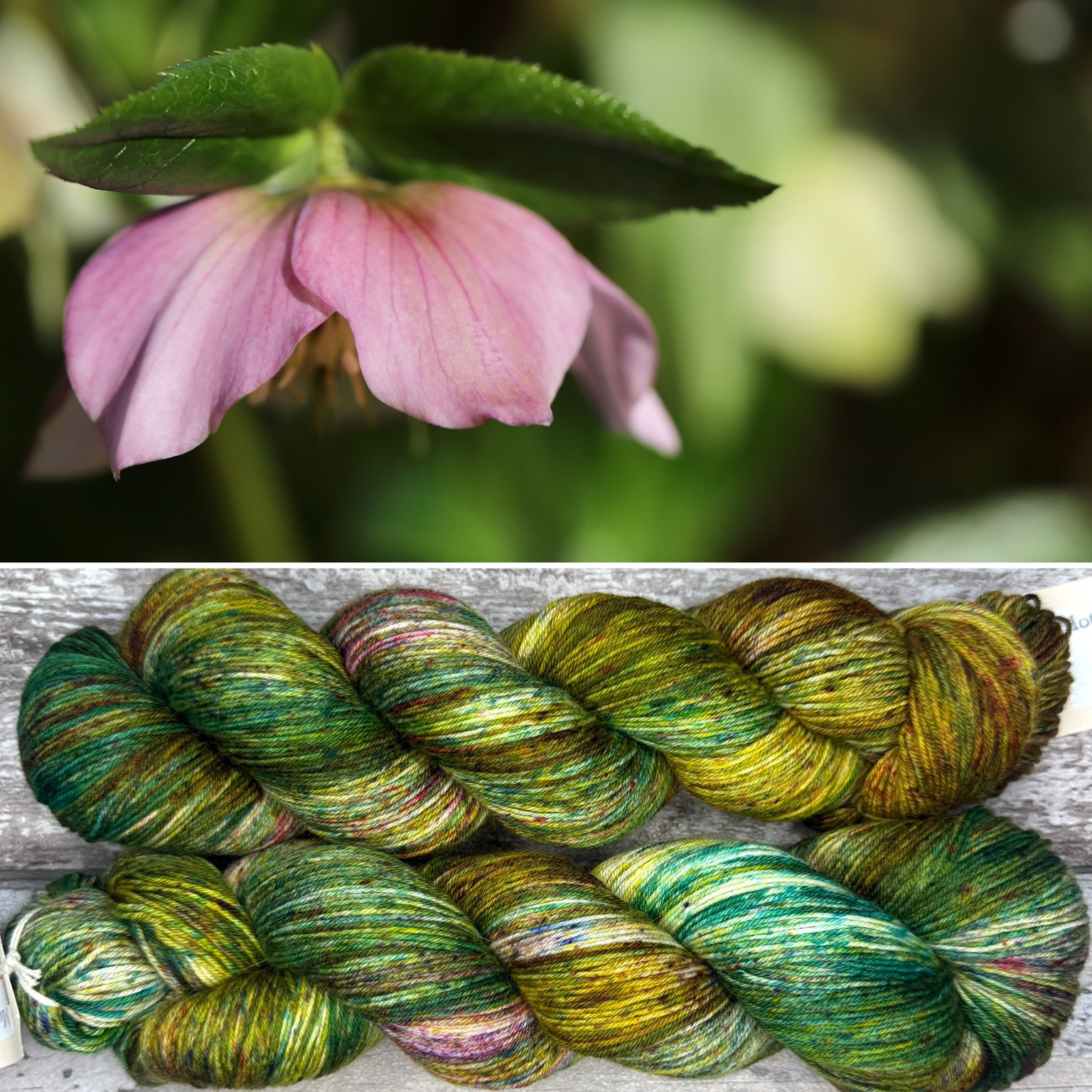 A version of Christmas Rose on sparkle sock. The silver stellina yields a subtle frosty sparkle that delightfully wintry. Also available without sparkle if you prefer. #mothyandthesquid #yarn #knitting #crochet mothyandthesquid.com
