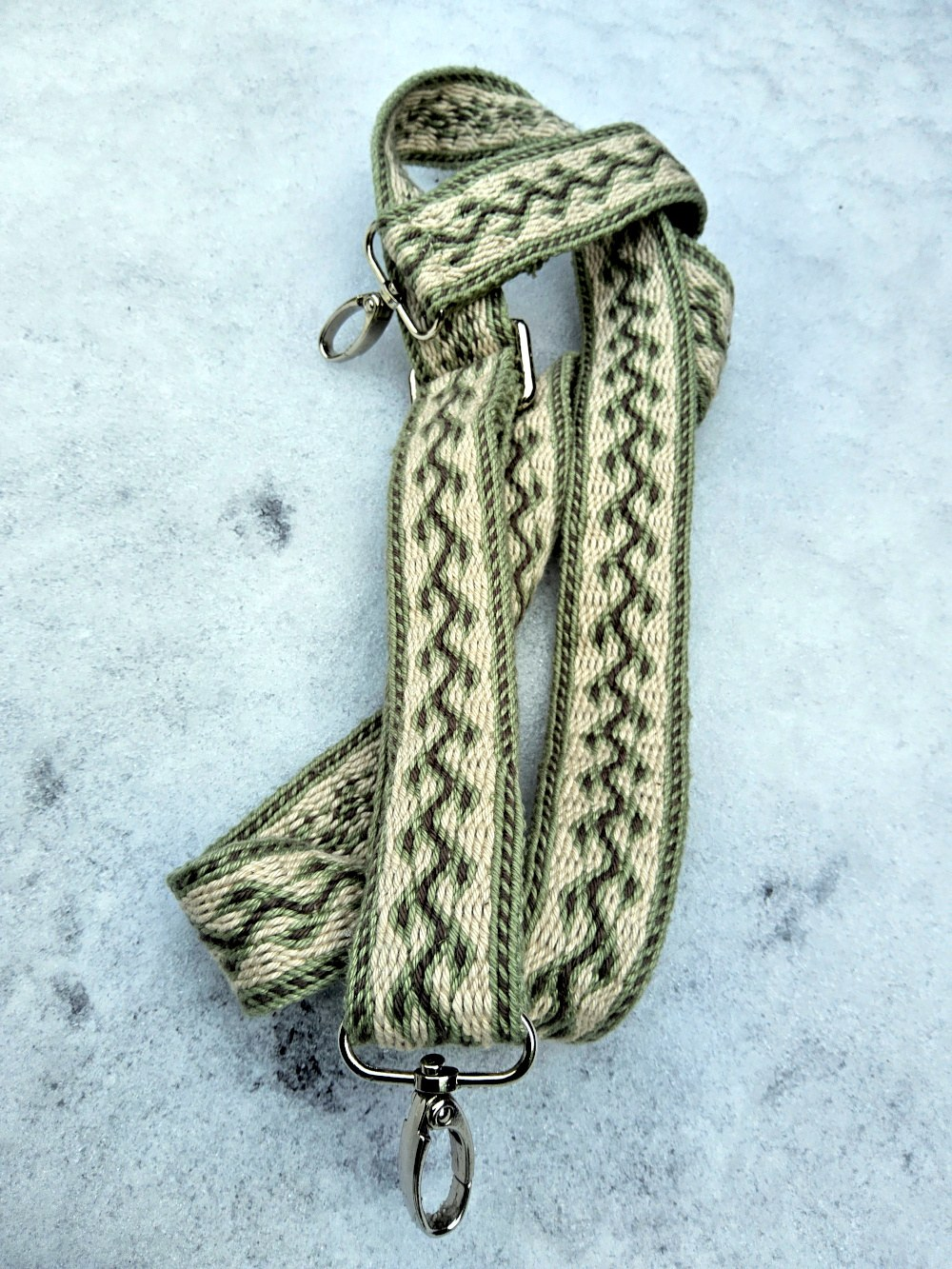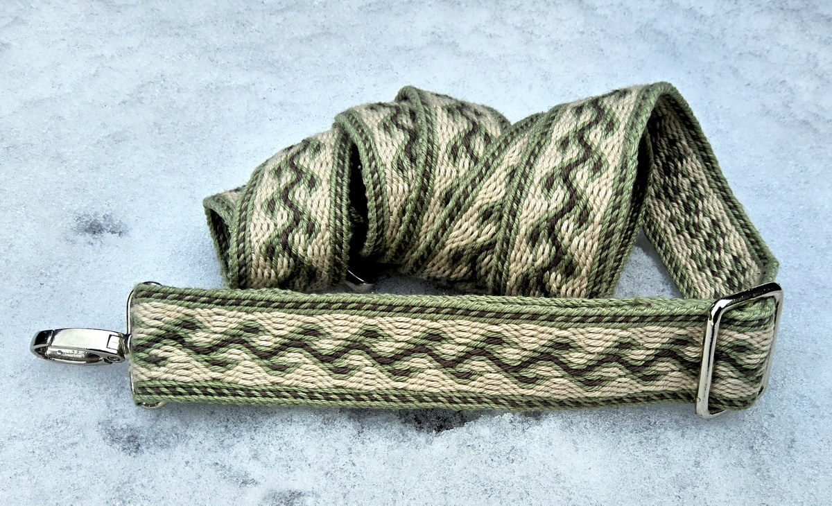 in summer i bought this small hand woven bag and i was unable to find a matching strap for it. i picked up tablet weaving to make one myself. this is it! it is finished, i am done, i can stop now