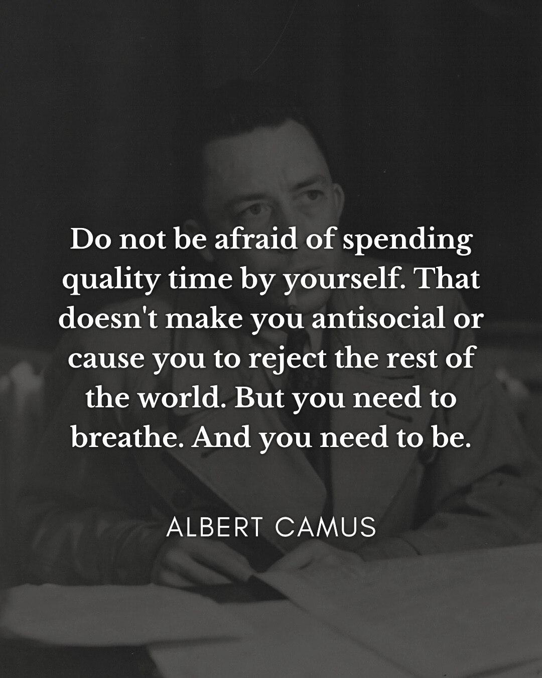 Do not be afraid of spending quality time by yourself. That doesn't make you antisocial or cause you to reject the rest of the world. But you need to breathe. And you need to be. #stoicism #life #philosophy