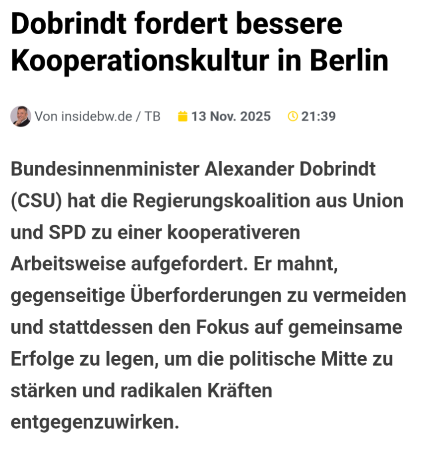 #dobrindt fordert eine bessere Kooperationskultur in der Bundesregierung.