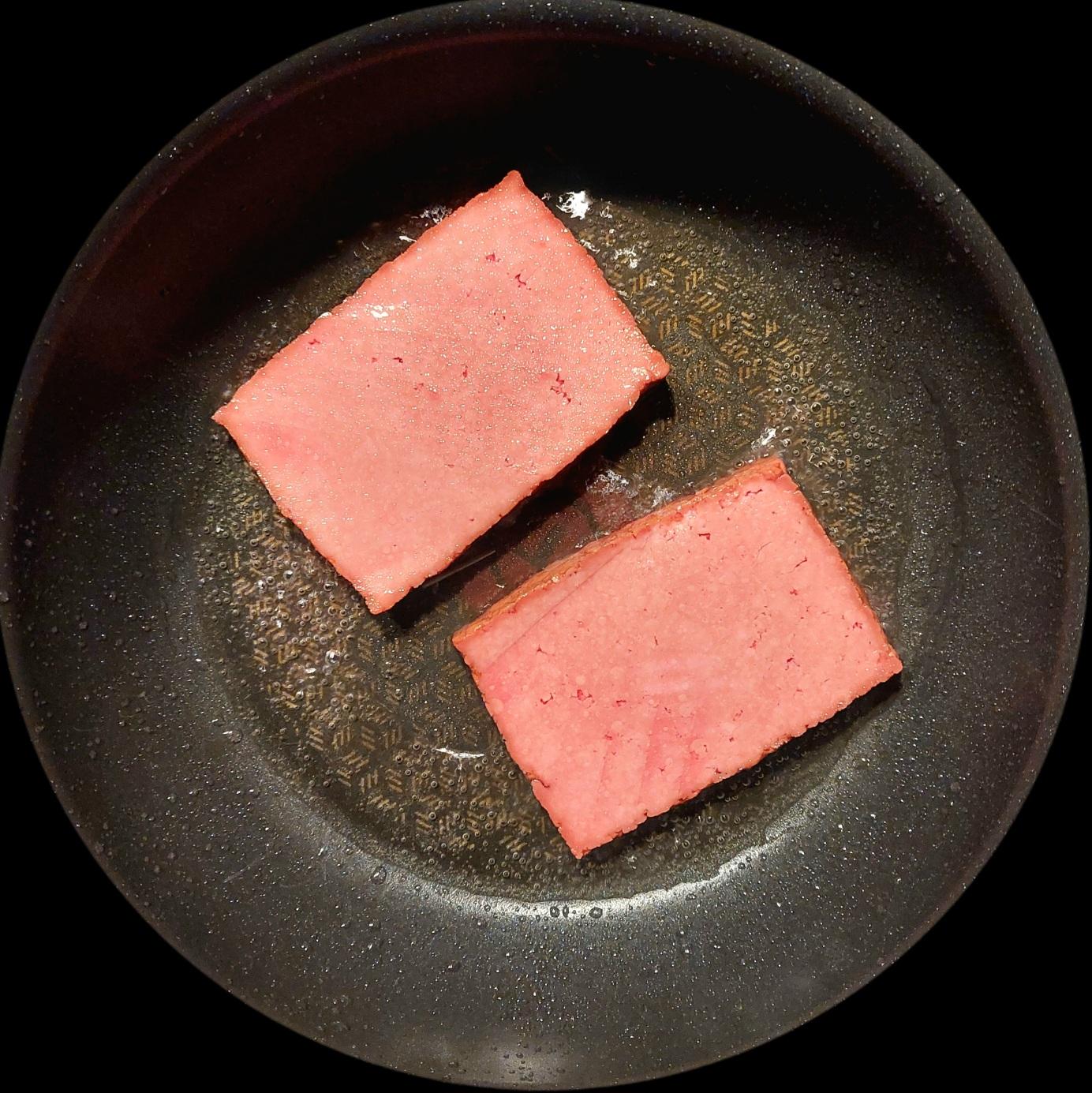 Der "Kassler" ist über Nacht in salzigem Rote-Beete-Saft eingelegter Räuchertofu.