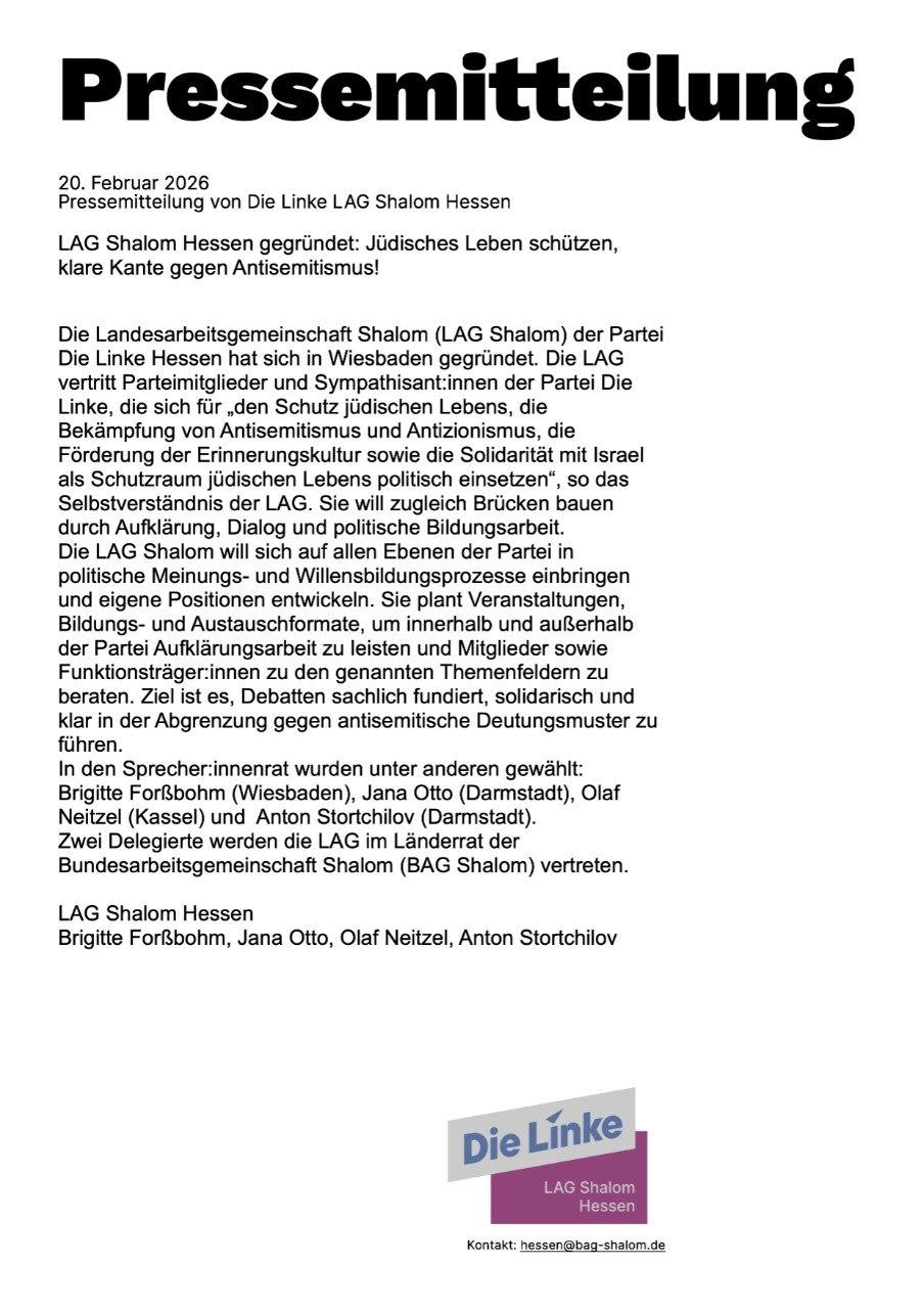 Das ist gut: Es gibt nun die Hessische LAG Shalom der @dielinke bzw @dielinkehessen.