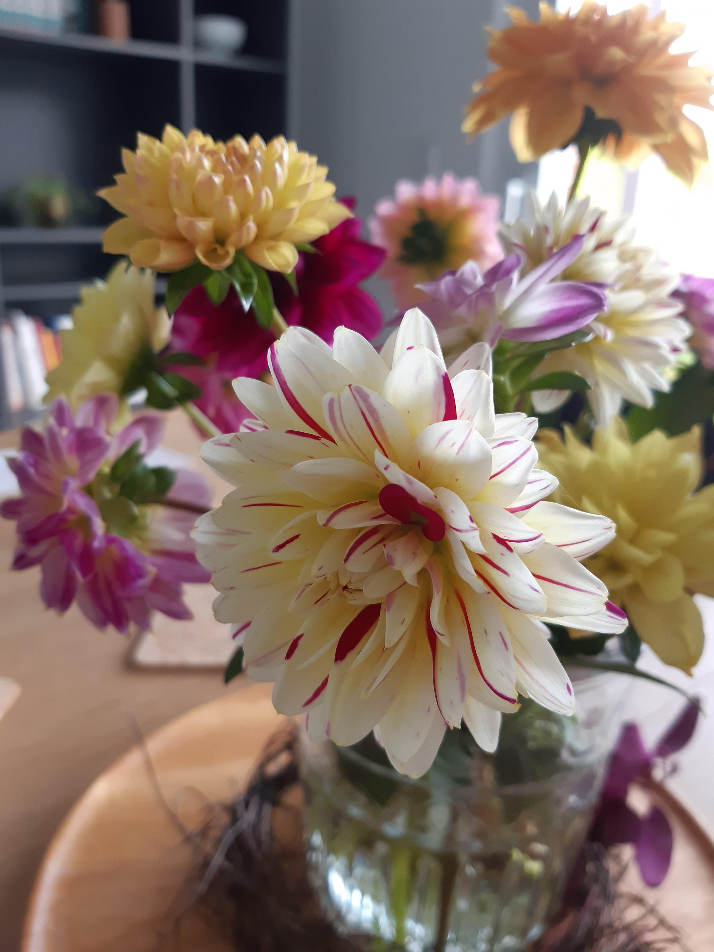 Die Regenfront hat uns erreicht. Ich freue mich jetzt über die letzten Dahlien, die ich auf dem Blumenfeld geschnitten habe. Noch blühen in meinem Garten einige Sommerblumen, aber wohl nicht mehr lange. Ich lasse sie aber stehen, denn Wildtiere freuen sich darüber. So sind sie z.B. auch Überwinterungsort einiger Insekten.
