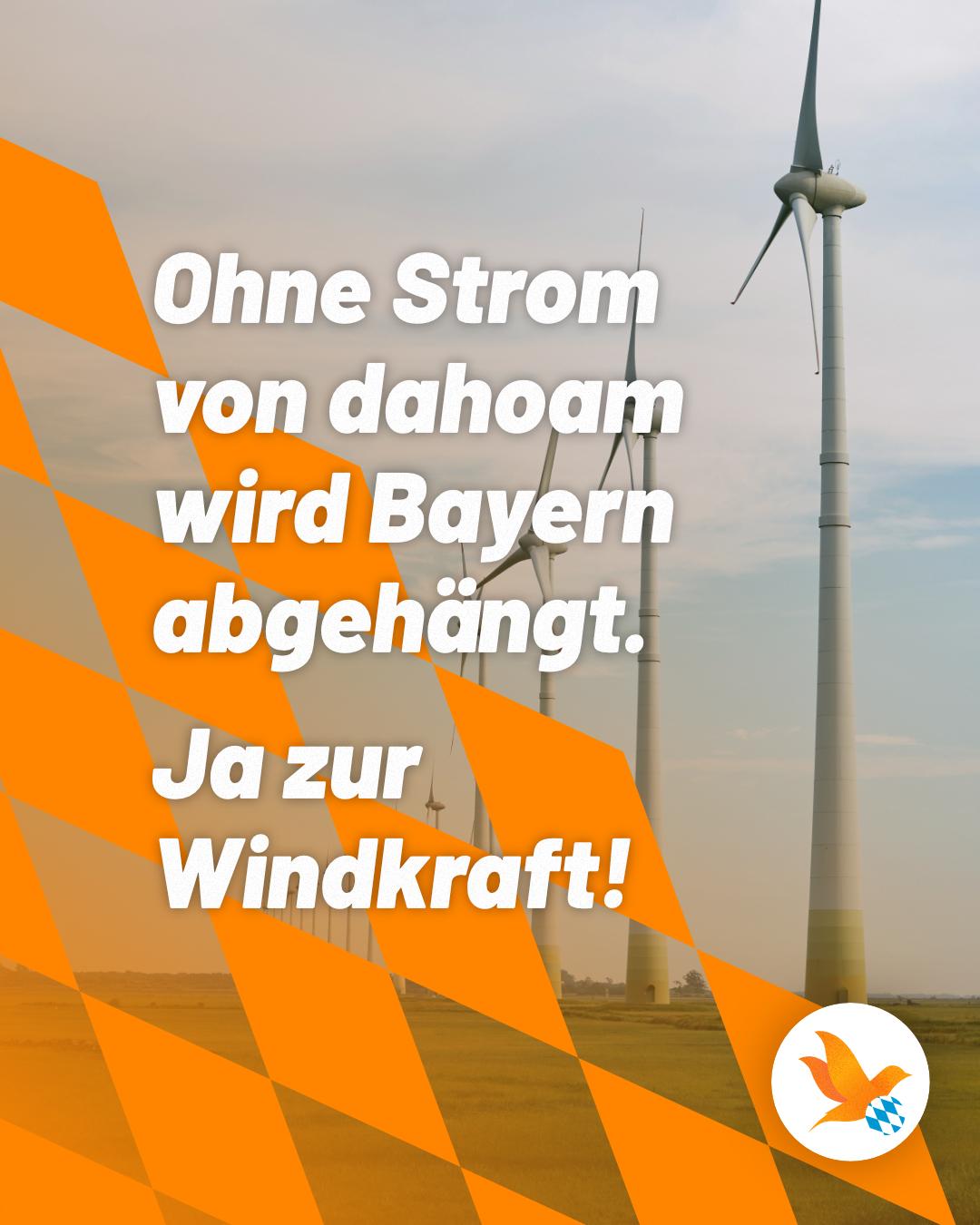 Bayern hat eine starke Wirtschaft - damit das so bleibt, müssen wir es schaffen die Energie, die wir dafür benötigen, auch bei uns daheim zu produzieren. Wind und Sonne müssen - anders als Öl und Gas - nicht importiert werden. Das schafft saubere, nachhaltige Energie und gewährleistet unsere Versorgungssicherheit!