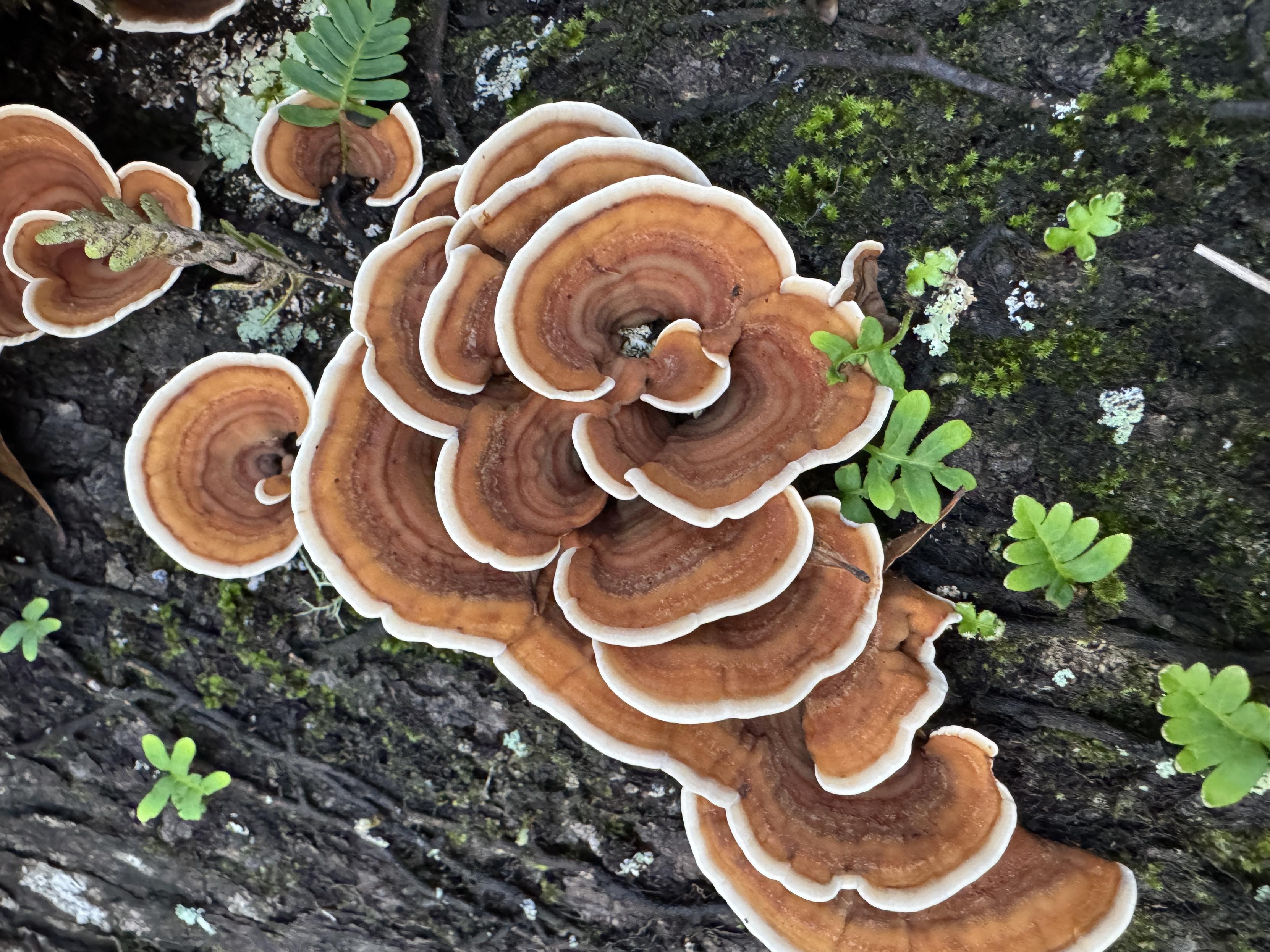 #mushtodon #fungiFriends #fungiverse #nature #pnw #awalkaday #mosstodon #mushrooms #shelffungus #ferns
