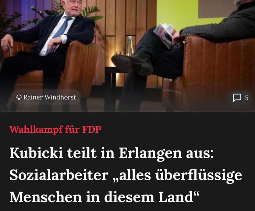 Wann ist da eigentlich in der Raumzeit etwas zusammen gebrochen, dass sich so verwahrloste Alkoholiker wie Kubicki sich öffentlich trauen, so etwas zu sagen? Also ernsthaft. Kann jemand den Moment in der Zeitgeschichte benennen, als sich Arschlöcher für das Arschlochsein nicht mehr öffentlich schämen mussten? Oder war das schon immer so und ich war nur naiv?
