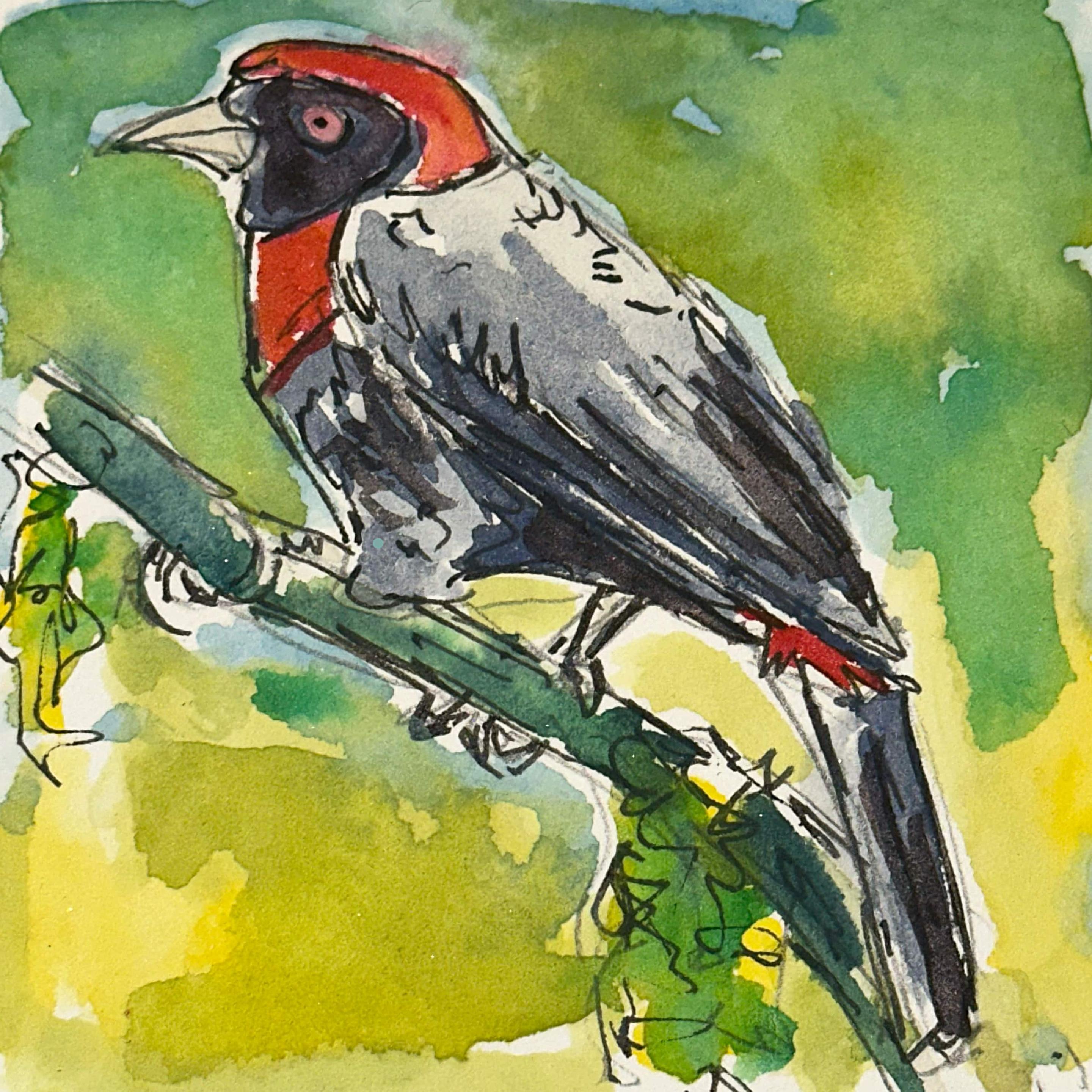 Art 365/008: Scarlet backed tanager. To make the red pop, I paint it over an underpainting of yellow.