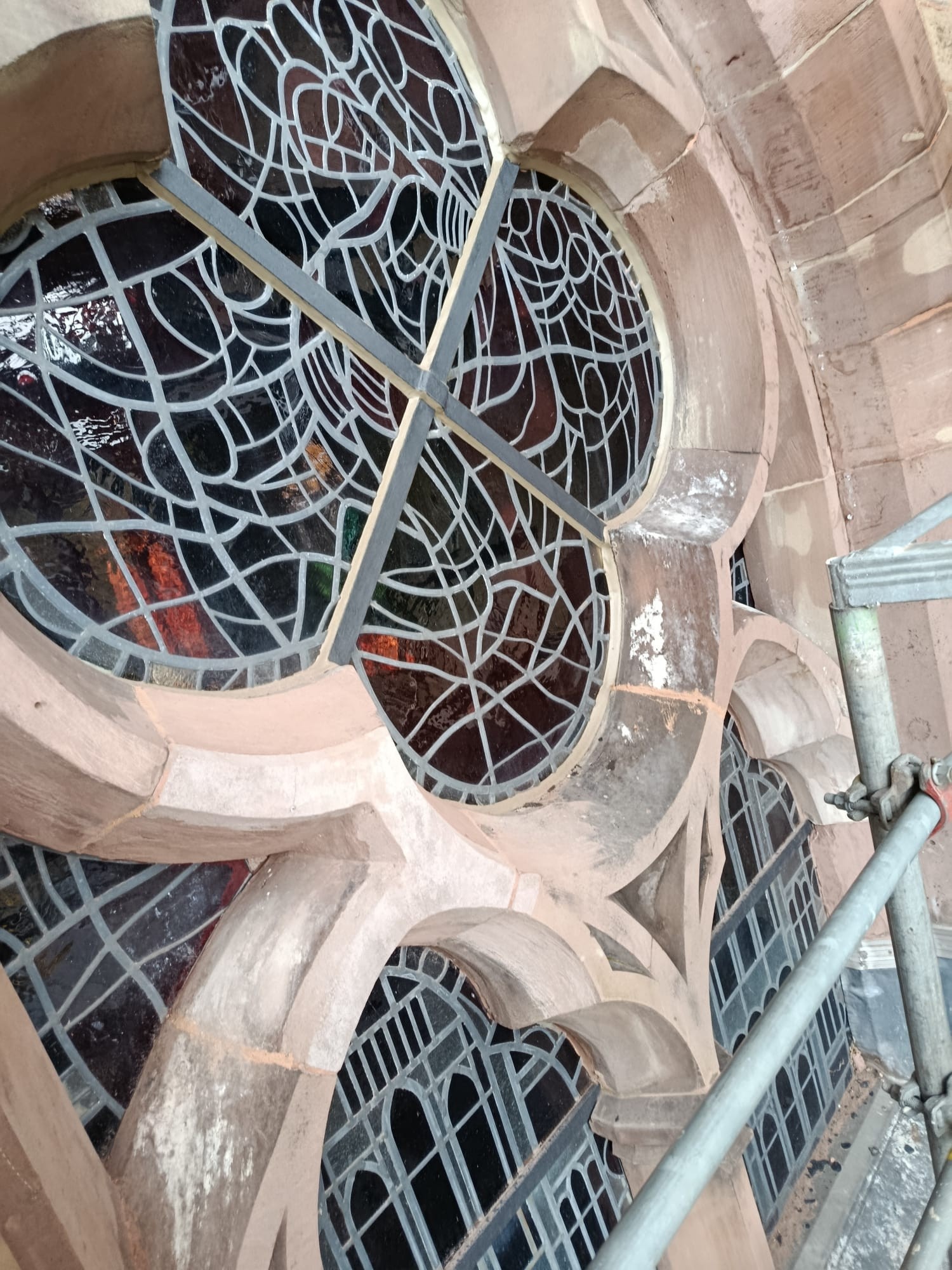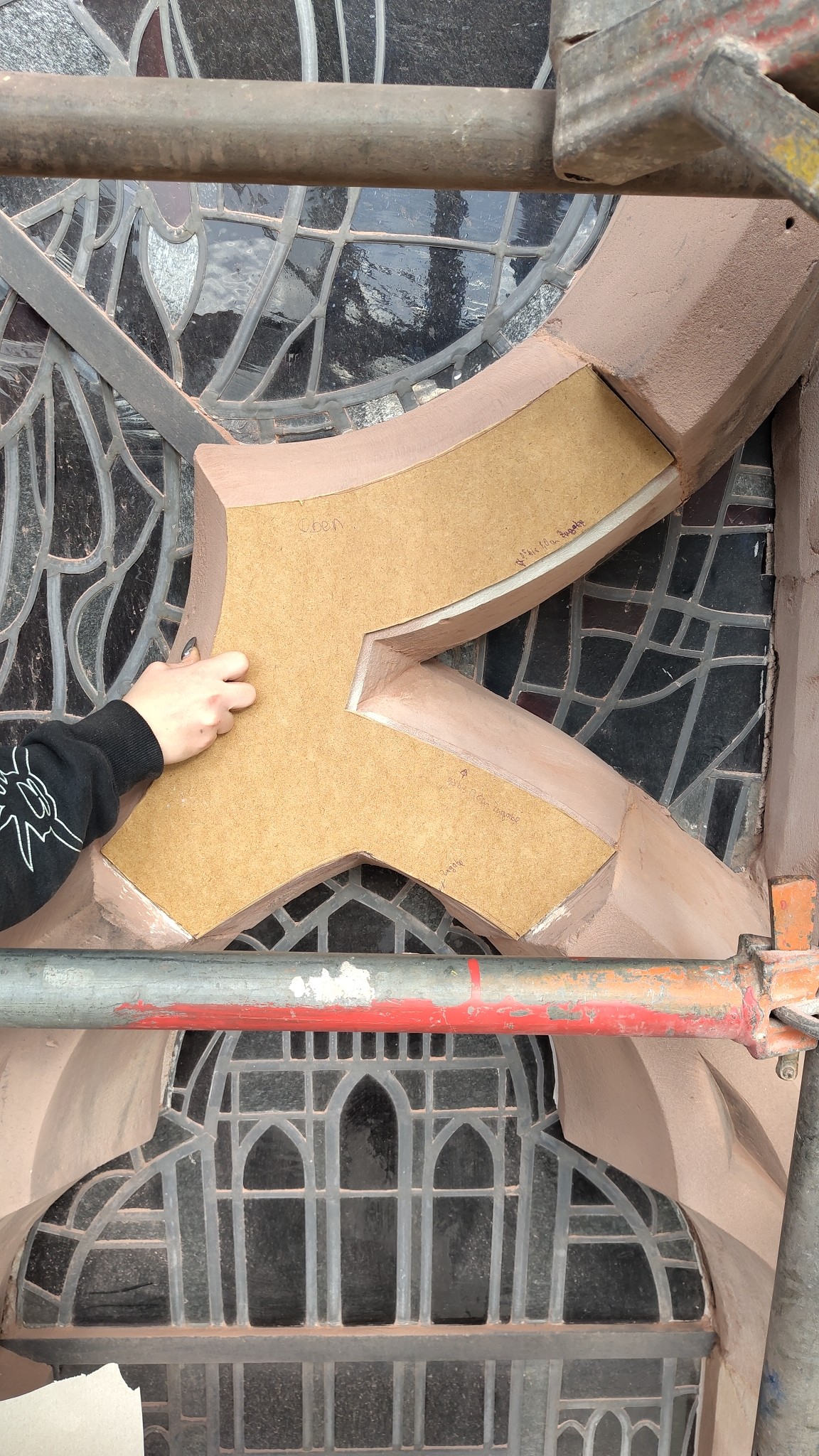 Gestern haben wir die sauschwere Maßwerkvierung montiert.