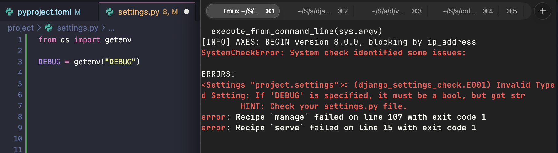 - Automatically fix up setting types at runtime, e.g. DEBUG="True" -> DEBUG=True
