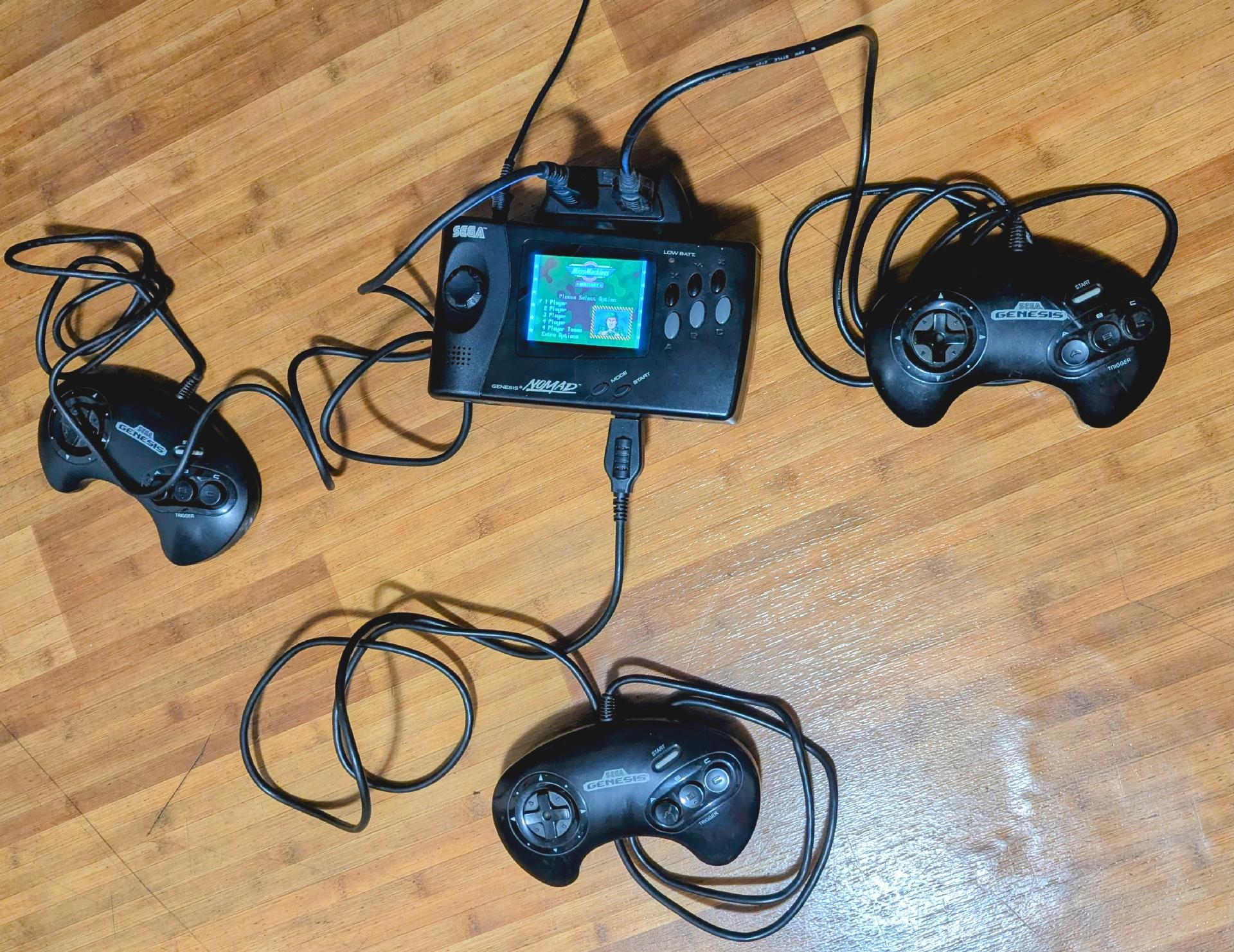 Alright everyone, huddle up - we're gonna do 4-player on my Nomad with the Micromachines J-cart! Snuggle up close!