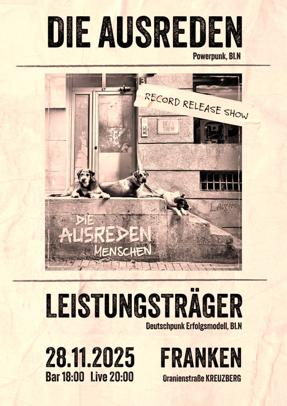 Am 28.11. feiern unser alle Lieblinge die @die_ausreden aus Berlin (auuuuus Beeerrrlin) die Release Party im Franken (gegenüber vom So36).