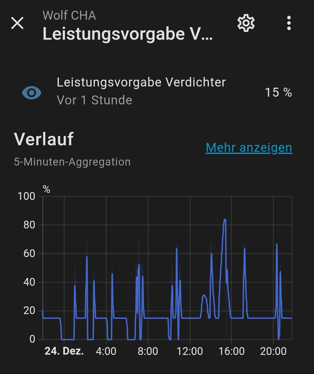 ➡️ Pumpe läuft jetzt länger am Stück, aber langweilt sich meist bei 15% (minimale Leistung).