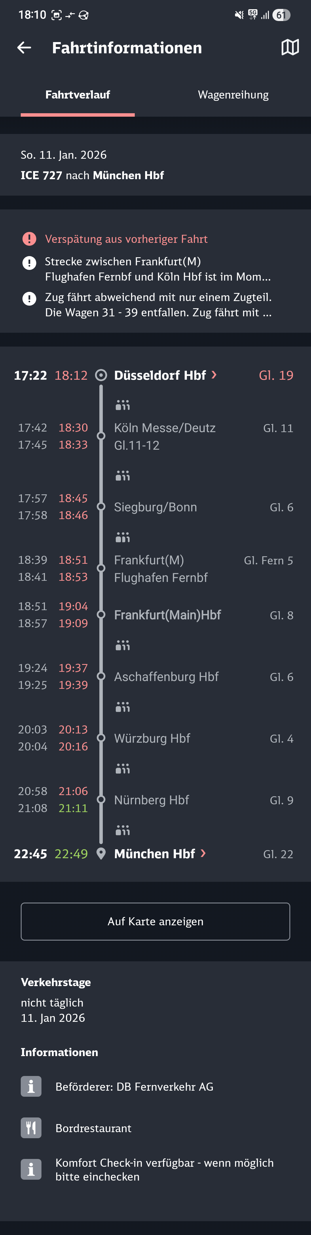 Eine Frage an die #Bahn Nerds: Was war gestern, 11.01. mit ICE 574 / 2832 Stuttgart - Hamburg los? Bis kurz nach der geplanten Abfahrt sollte der bis Frankfurt pünktlich fahren; dann hieß es Zug fällt aus. Da war kein Zug am vorgesehen Gleis. Meine Frage wäre nun, wo hätte der Zug herkommen sollen und seit wann wusste die #DB, dass der Zug nicht fahren wird?