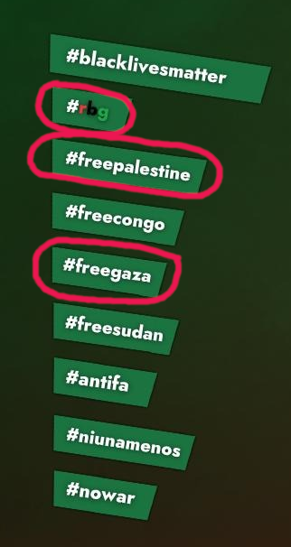 Hashtags von dem Demo-Aufruf, vor allem auff盲llig 3x Nahost aus einer sehr nationalistischen Sicht: #rbg #freepalestine #freegaza